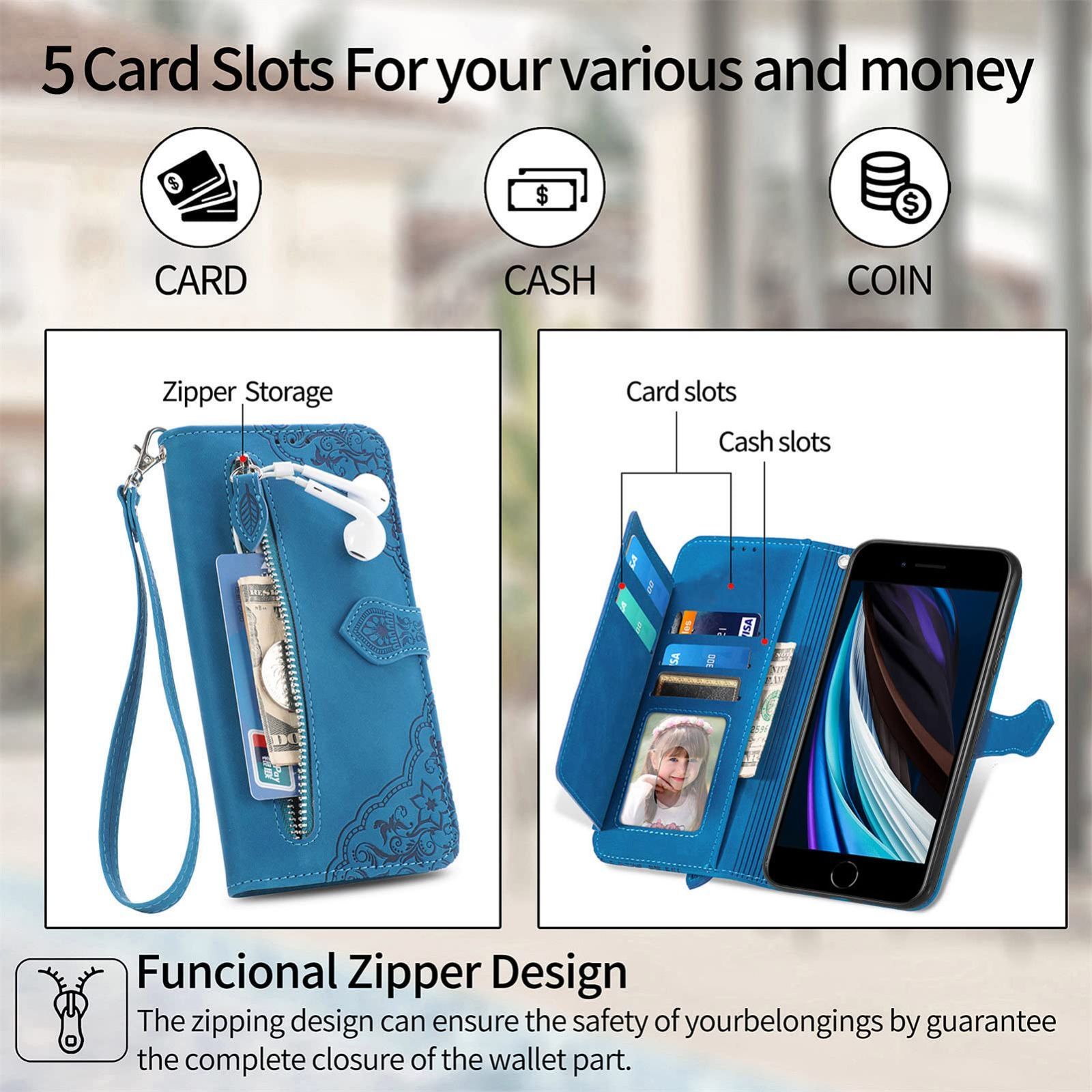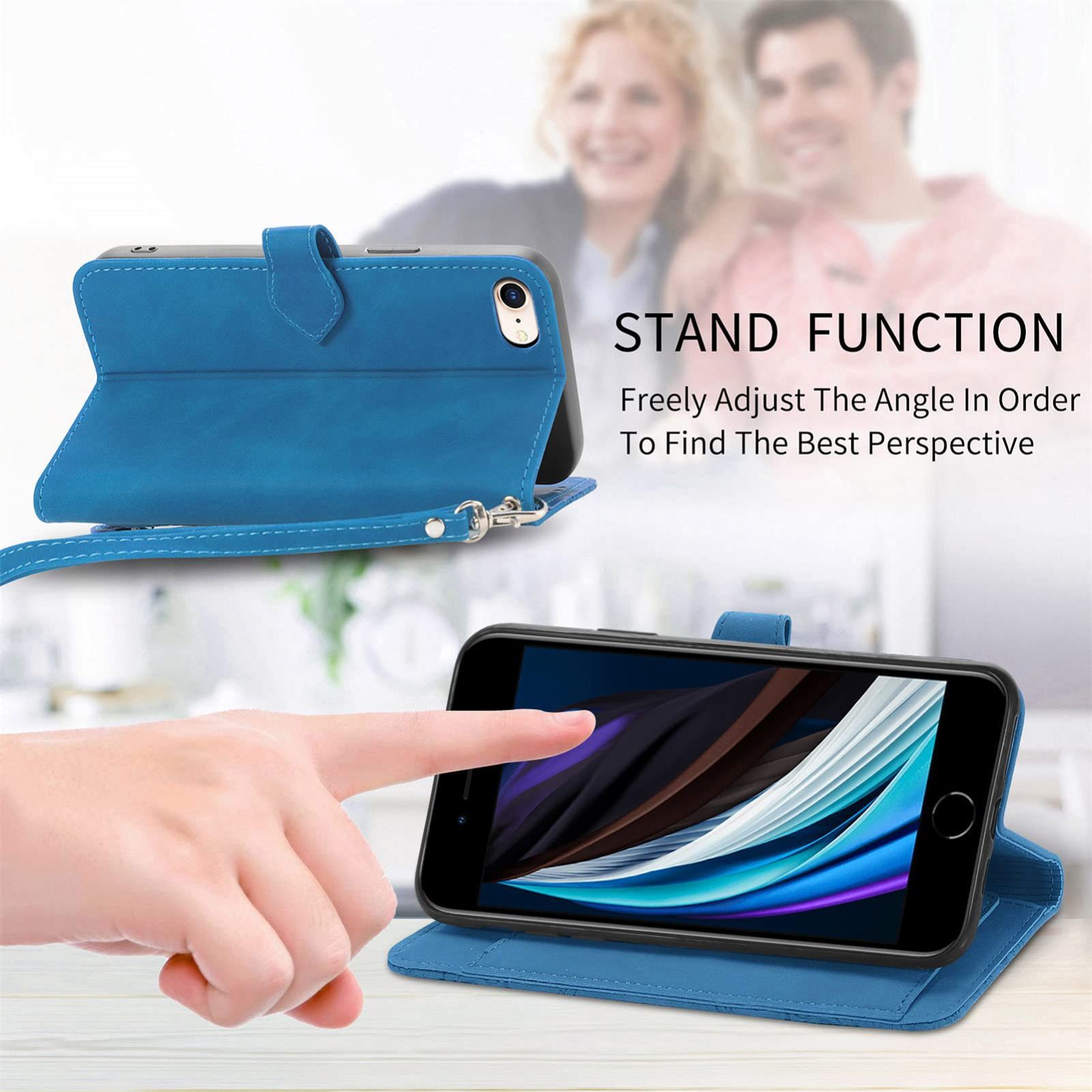 for iPhone SE 第3世代 (2022) / iPhone SE 第2世代 (2020) / iPhone8 / iPhone7 ケース 手帳型 ビジネスフリップノートレザーケースシンプルなレトロなファッション携帯電話ケース防水と汚れた携帯電話ケース多機能財布収納付きスタンド携帯電話シェルPUレザー保護カバー耐久性のある摩擦(ブルー)