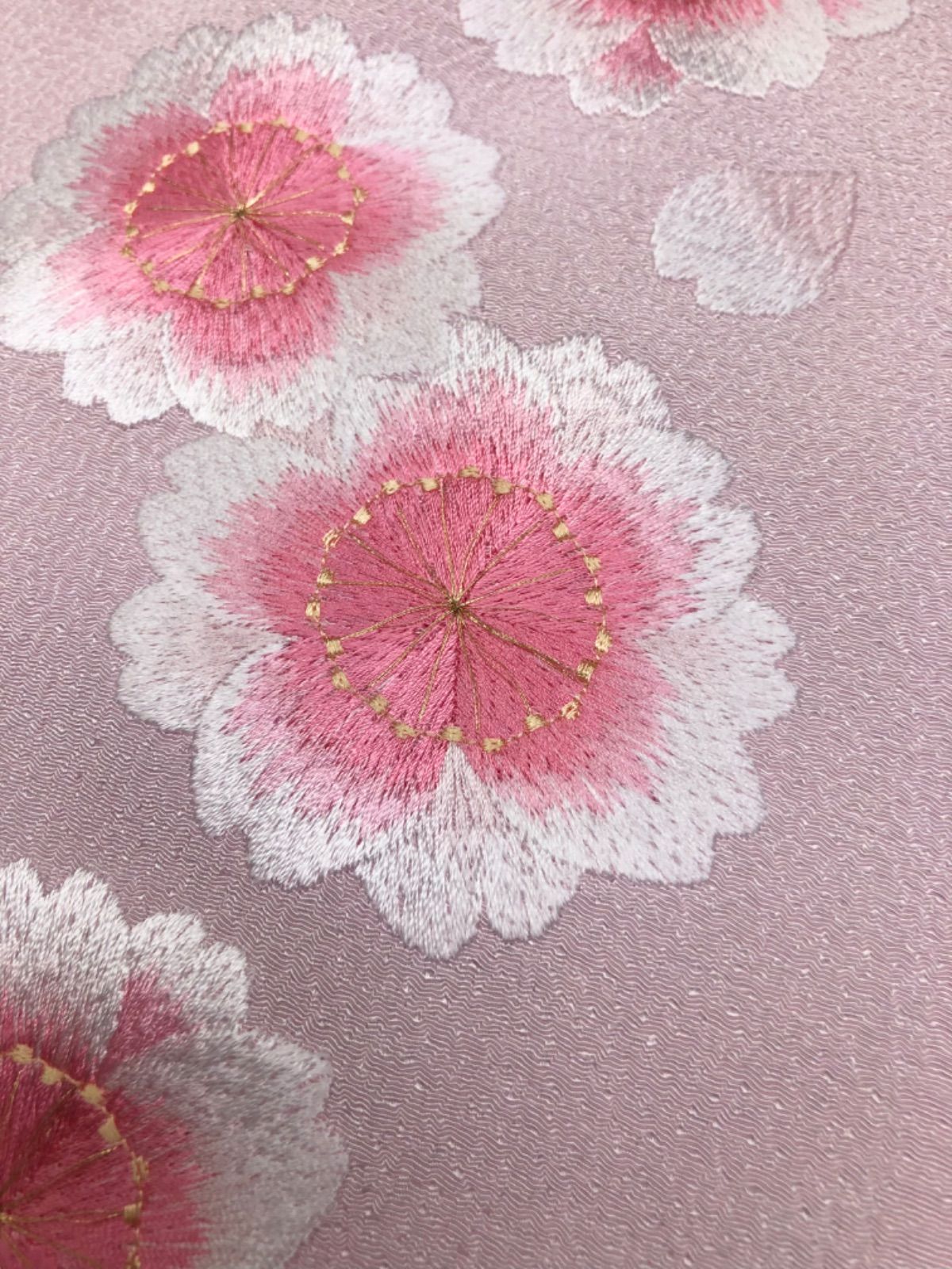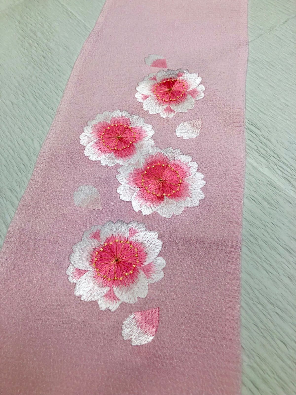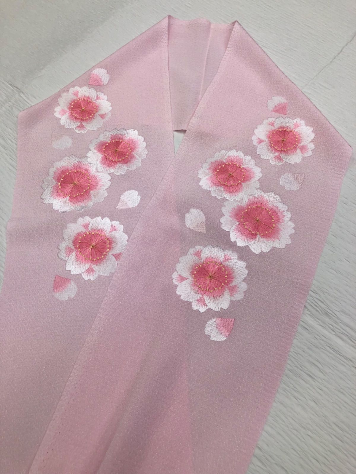 振袖用刺繍半衿 桜柄 ピンク 素材化繊 ピンクの振袖に合う可愛い半衿