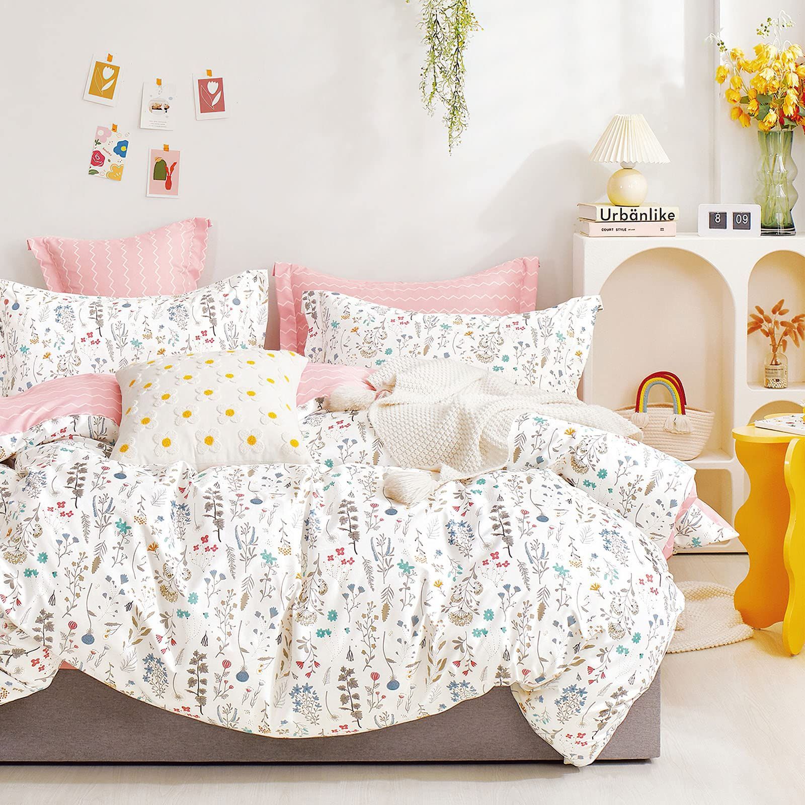 【新着商品】通気性 柔らかい 優しい肌触り 抗菌 封筒式 防臭 ベッド用 四季通用 ボックスシーツ 枕カバー (ピンク+白 掛け布団カバー シングル・3点セット) 寝具カバー
