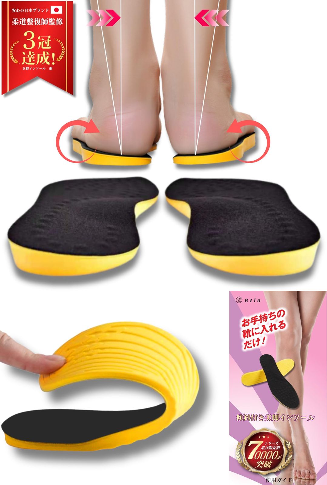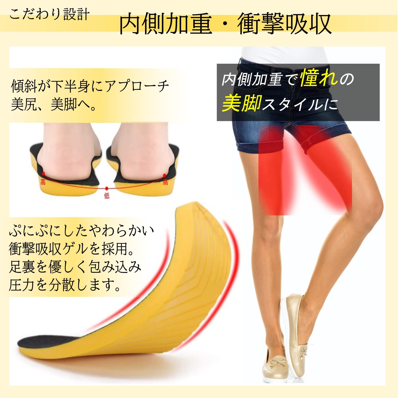 【柔道整復師監修】 O型脚 傾斜付き 美脚 インソール 中敷き 肌に優しいベルベット素材 男女兼用 eziu (1組 M)