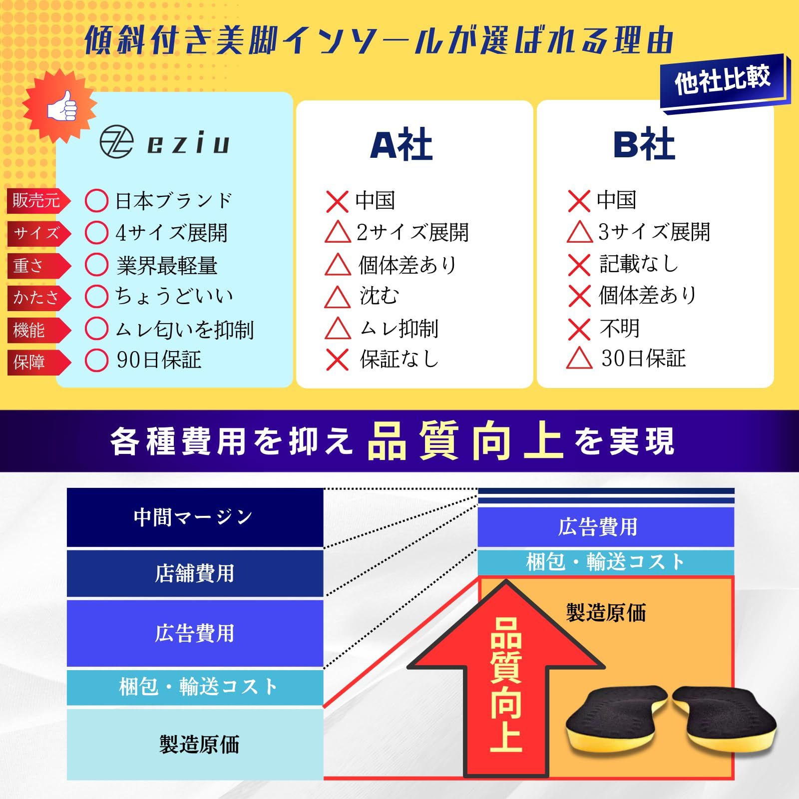【傾斜設計】インソールは高度差の傾斜設計があり、足裏に与えるカのバランスをとります。