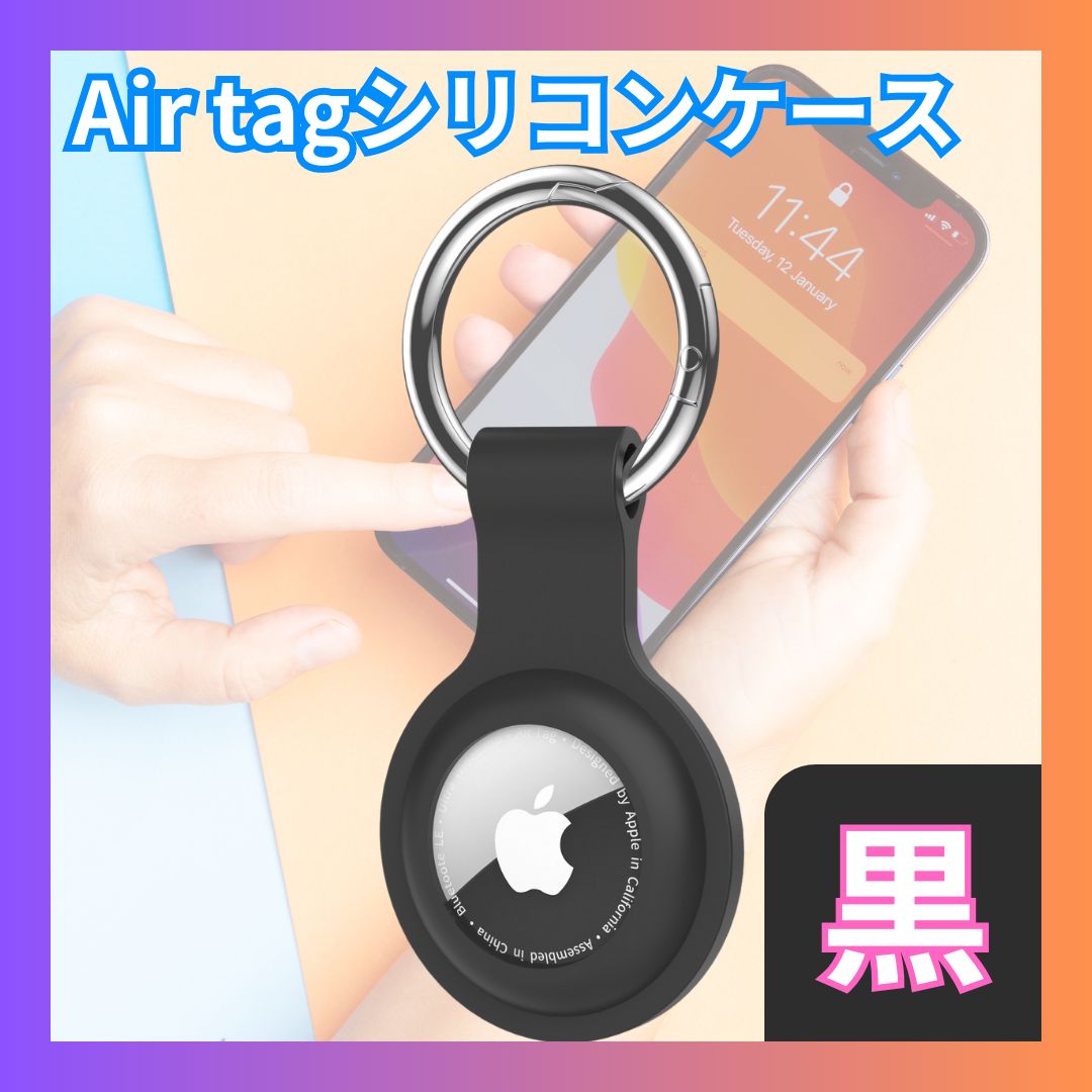 AirTag ケース 黒 シリコン エアータグ ホルダー カラビナ付