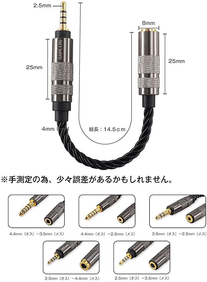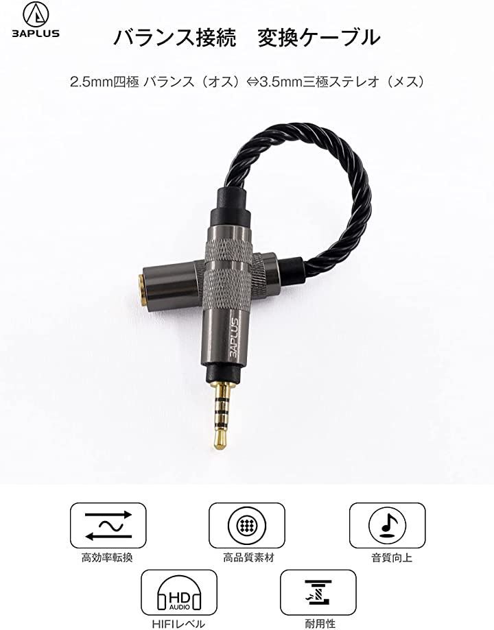 3APLUS ADM23 変換ケーブル バランス接続ケーブル 2.5mm四極 オス⇔3.5mm三極ステレオ メス( 2.5mm 4極バランス(オス)⇔3.5mm)