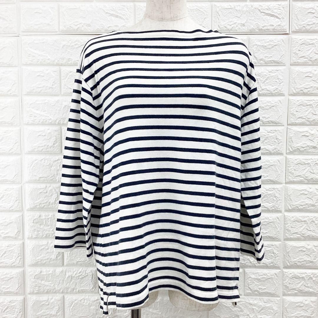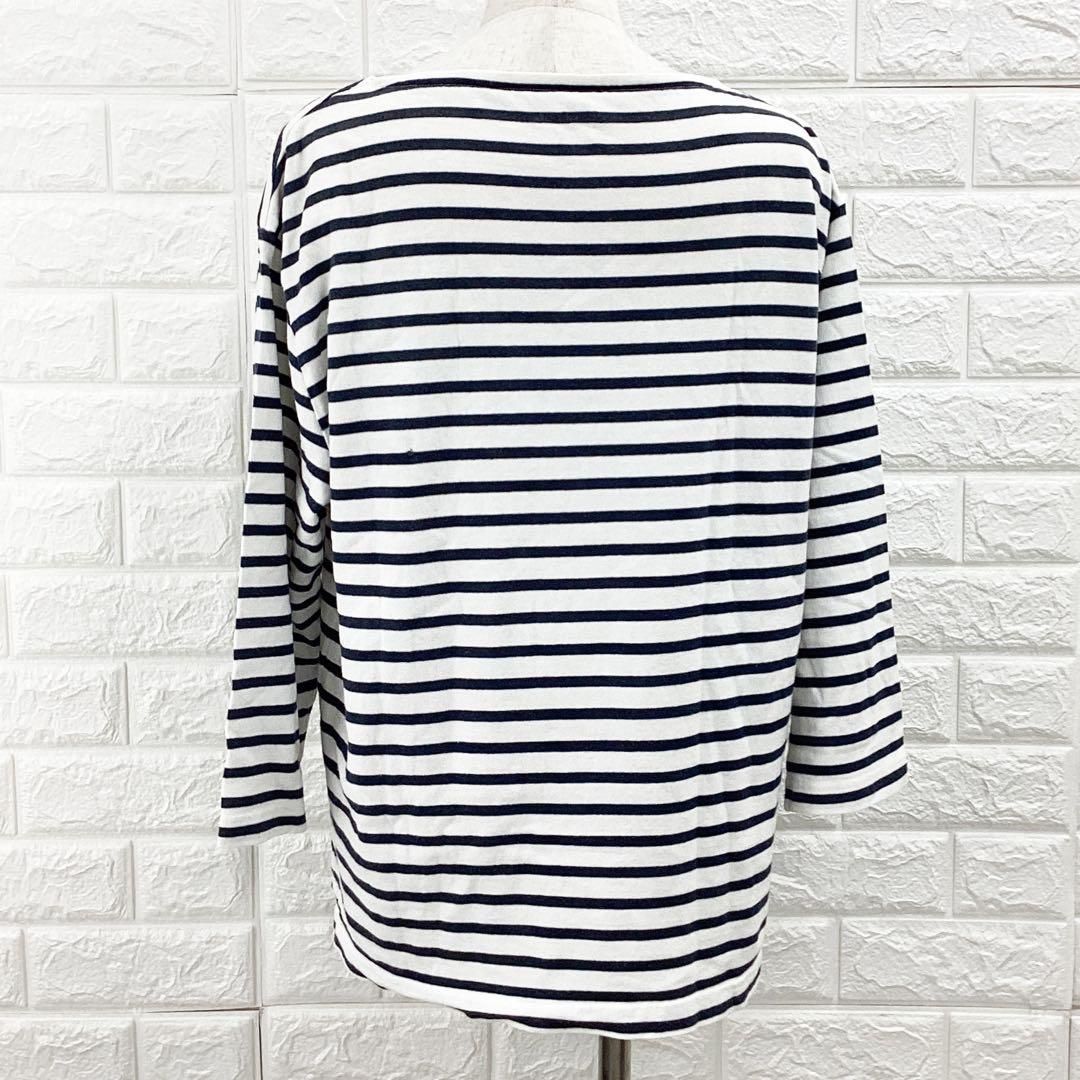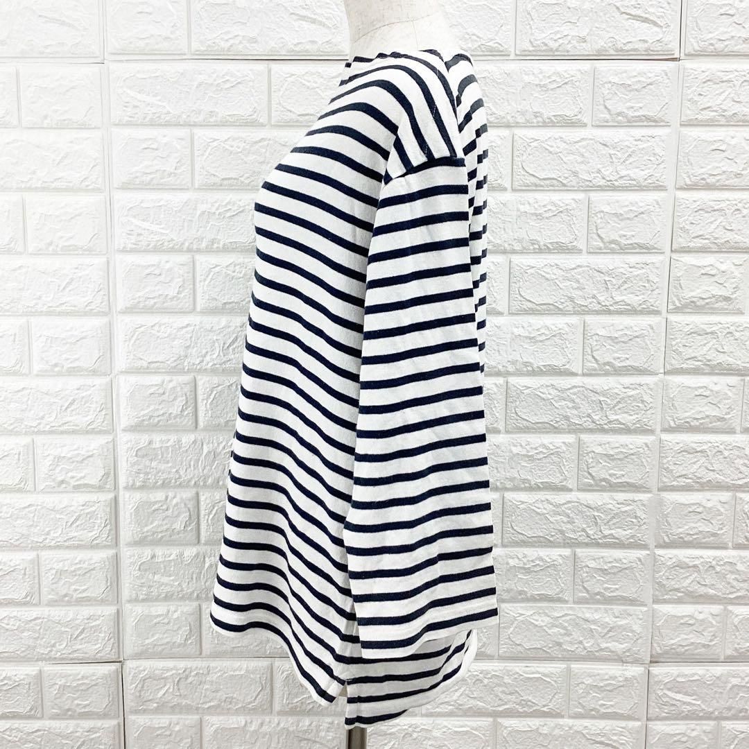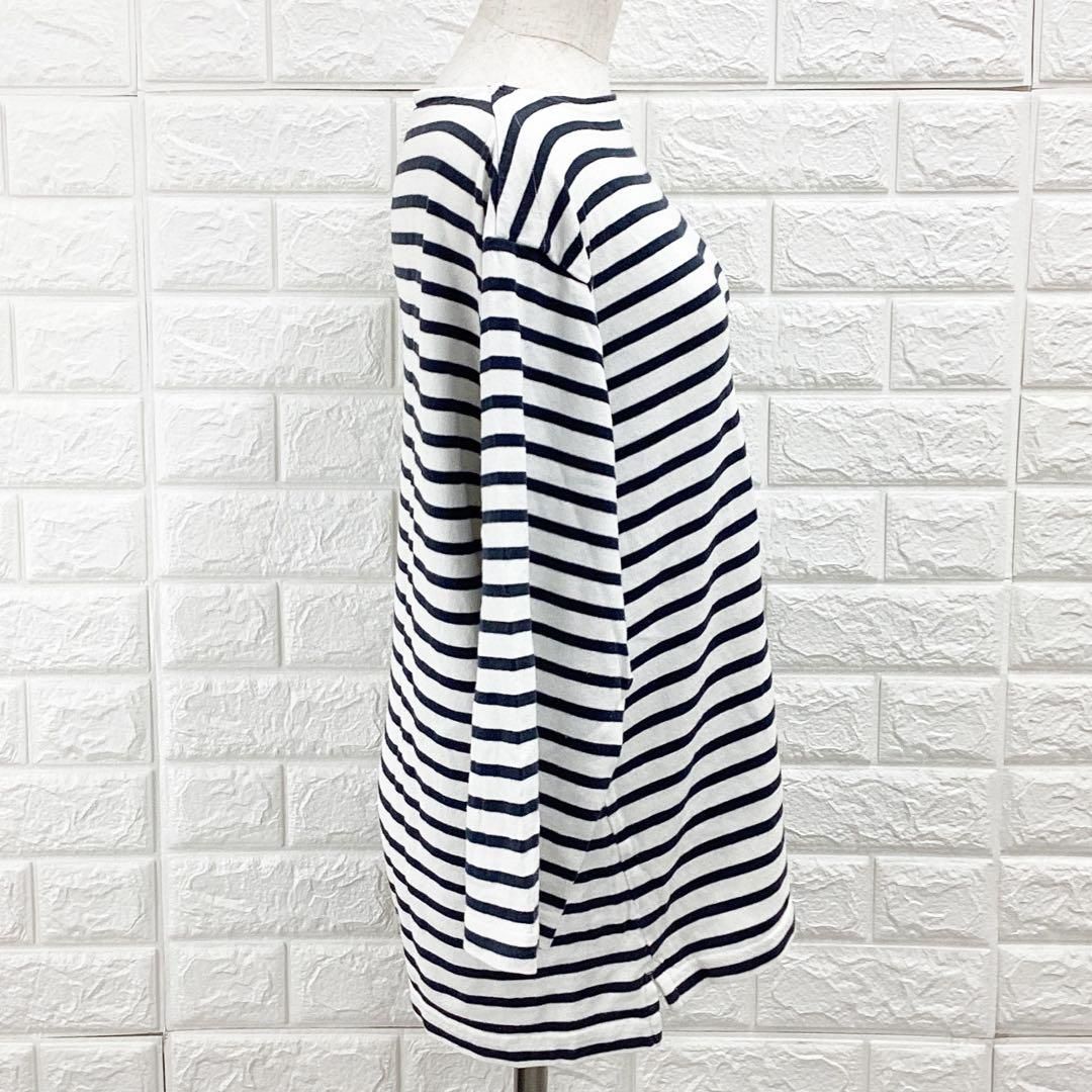 【A4405】 MUJI 無印良品 ロングTシャツ カットソー ボーダー ツートン 七分丈 ホワイト ブラック Uネック