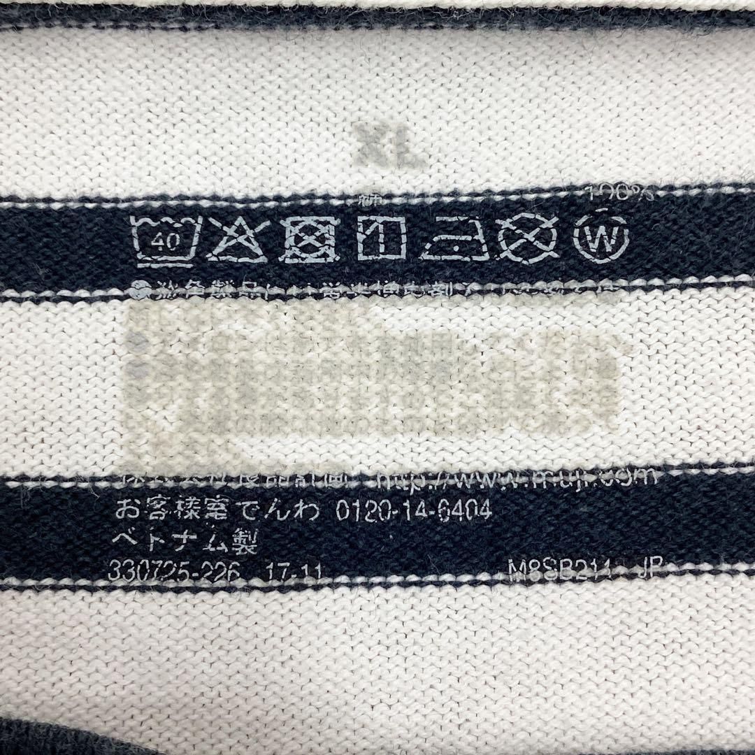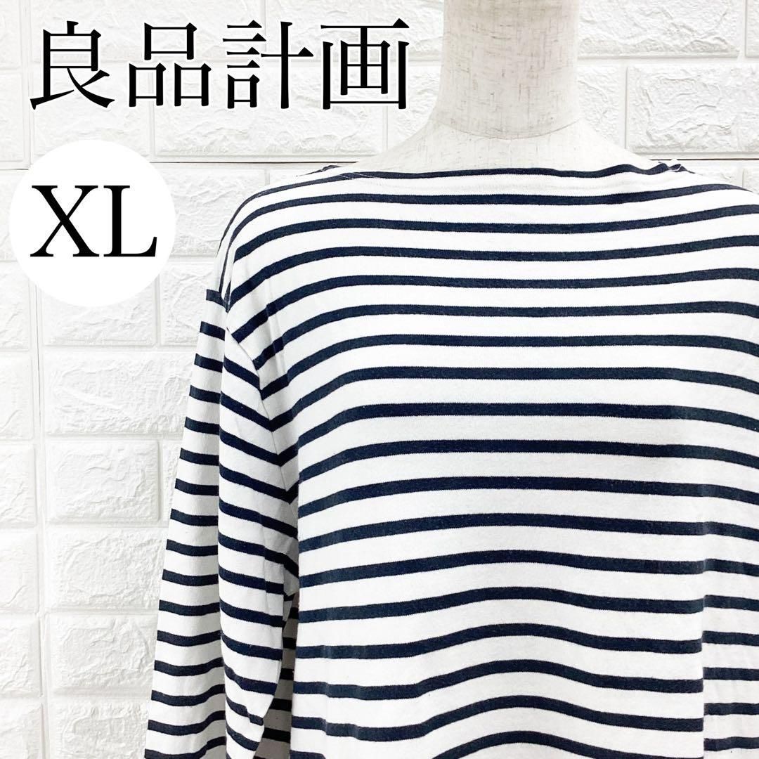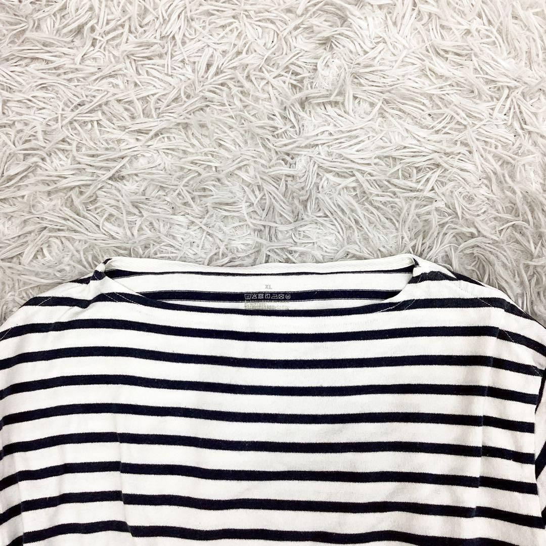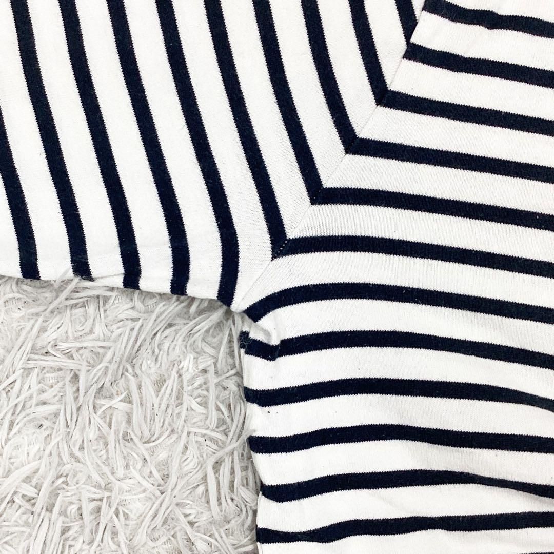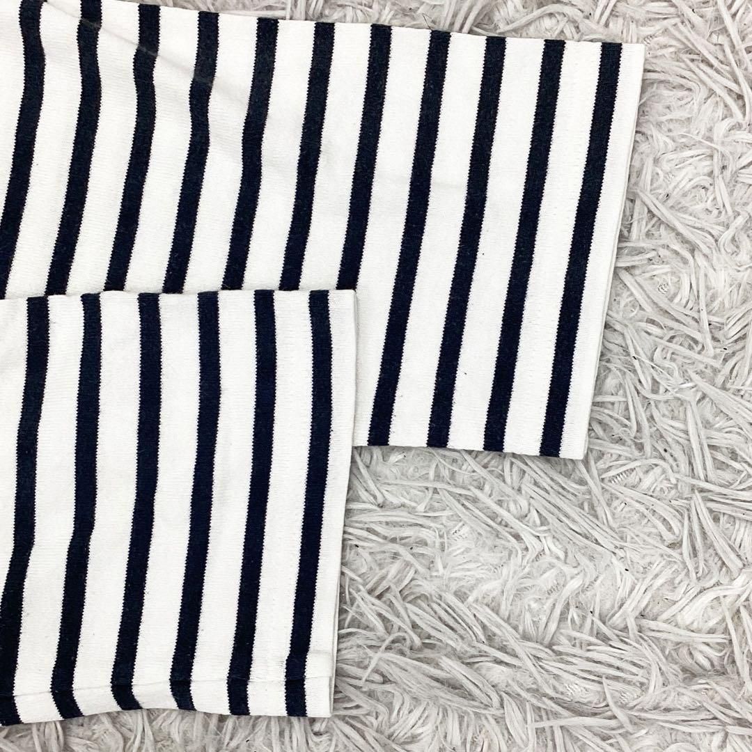 【A4405】 MUJI 無印良品 ロングTシャツ カットソー ボーダー ツートン 七分丈 ホワイト ブラック Uネック