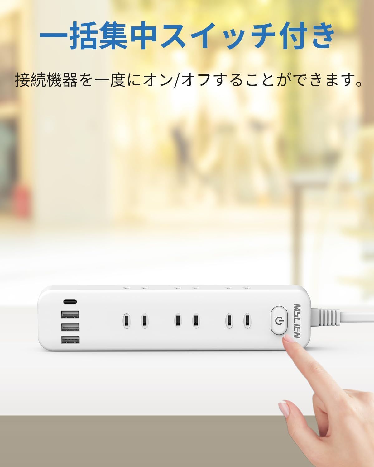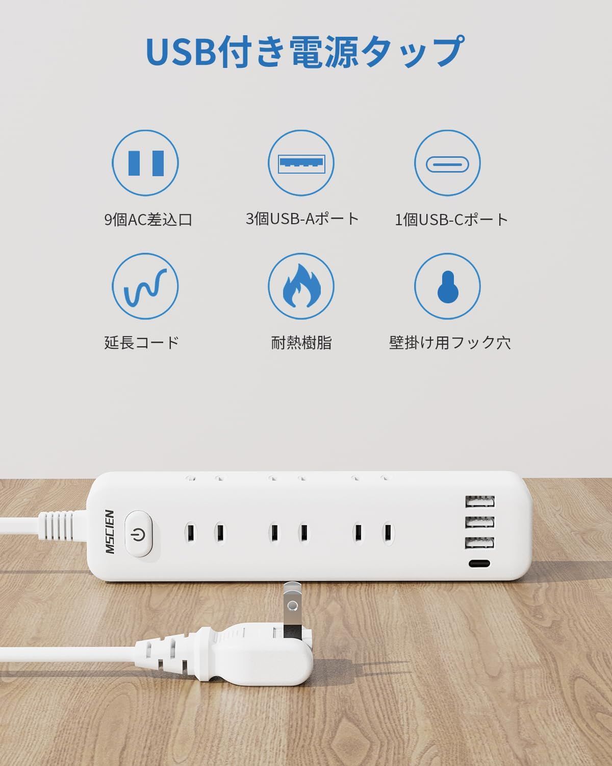 新品 Mscien 延長コード 3m 電源タップ usb コンセント タップ 1個USBC 3個USBA 9個AC口 Mscien テーブル OAタップ たこあしコンセント 分岐 一括スイッチ付き