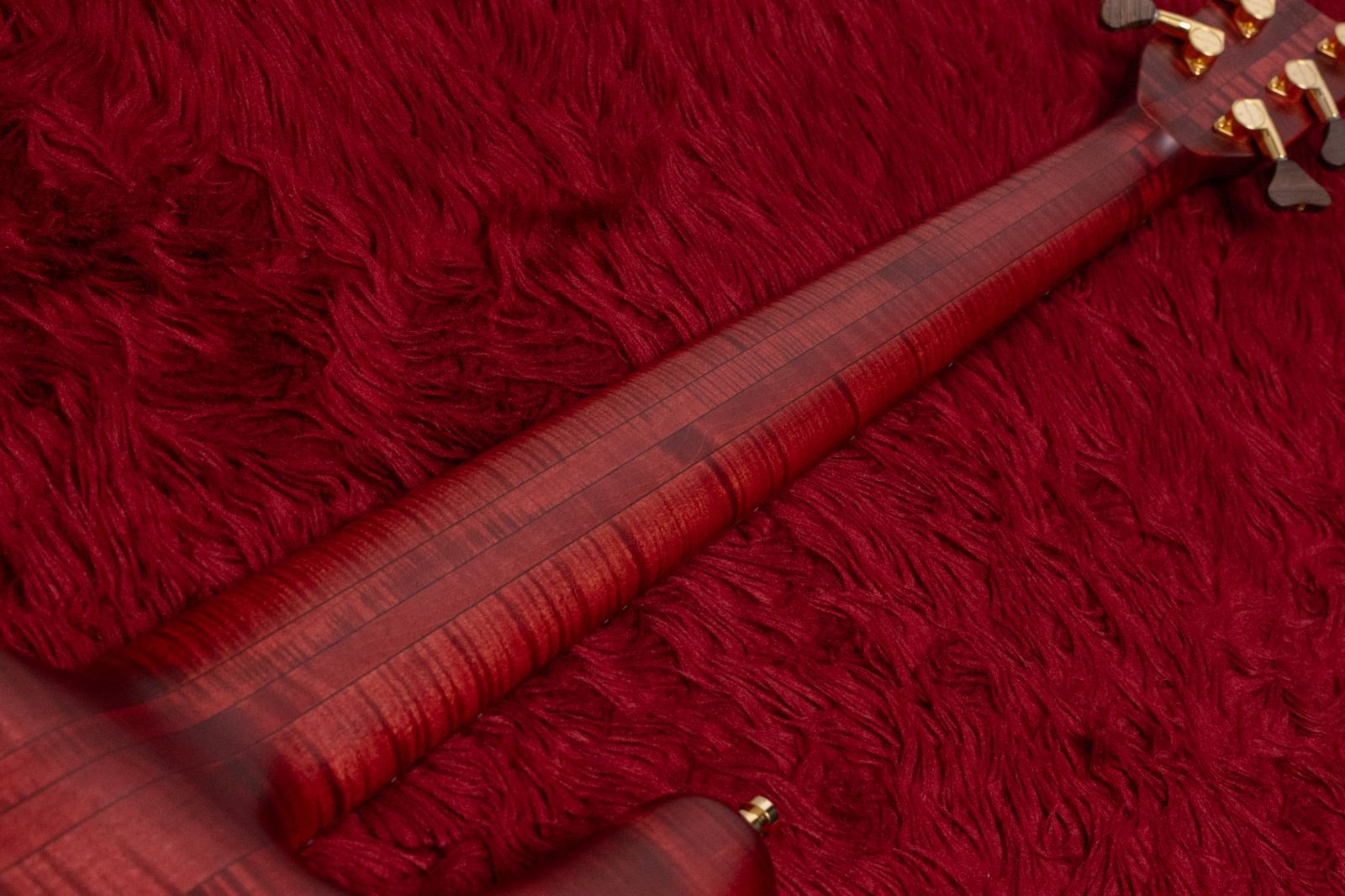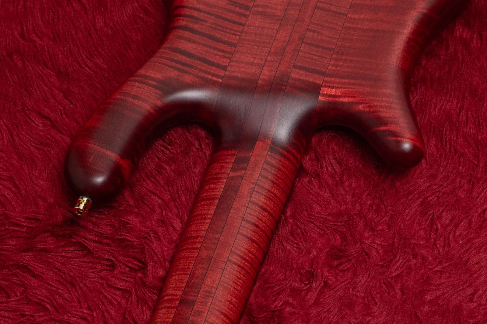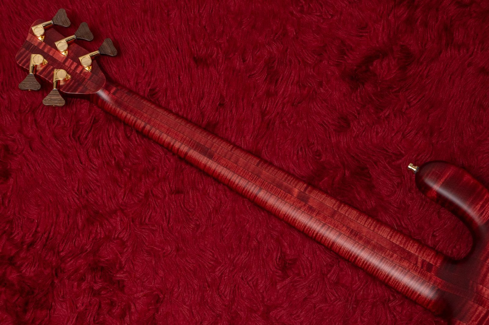 ネックにはFlamed Mapleを軸としたラミネートタイプ、指板はWengeという構成。