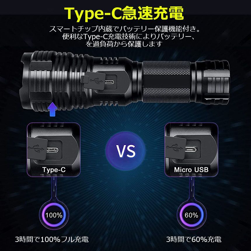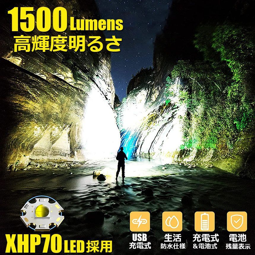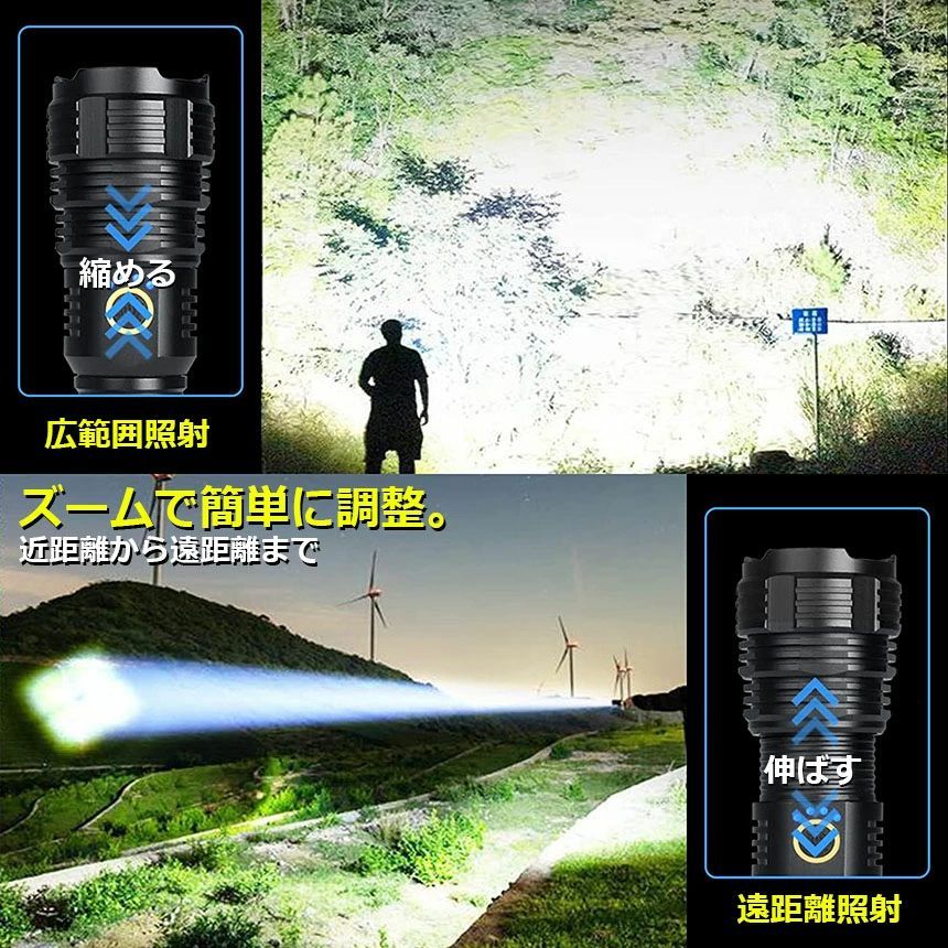 懐中電灯 XHP70 強力 防水 3個セット USB充電式 電池式 LCD残量表示 ズーム機能 5モード調光 TYPE-C入力 ledライト フラッシュライト かいちゅうでんとう led 明るい ハンディライト 登山用品 防災 停電対策 夜釣り SOS ライト