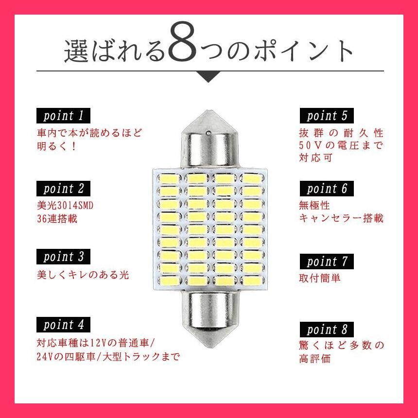 ★売れ筋★ T10 36mm 37mm LED ルームランプ 爆光 ホワイト 12v 24v led キャンセラー 無極性 3014SMD 2個セット 車検対応 ft-035
