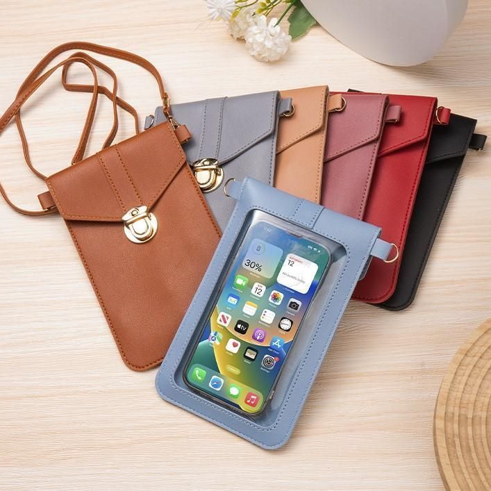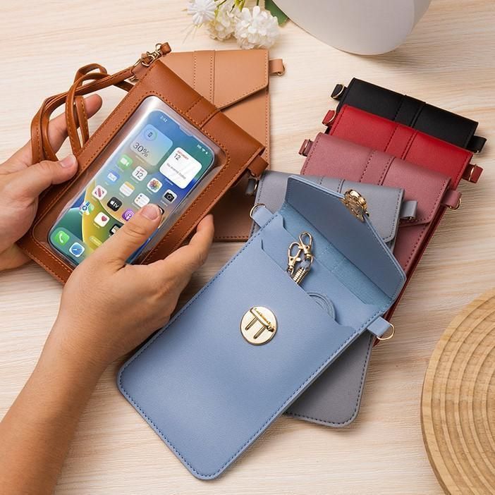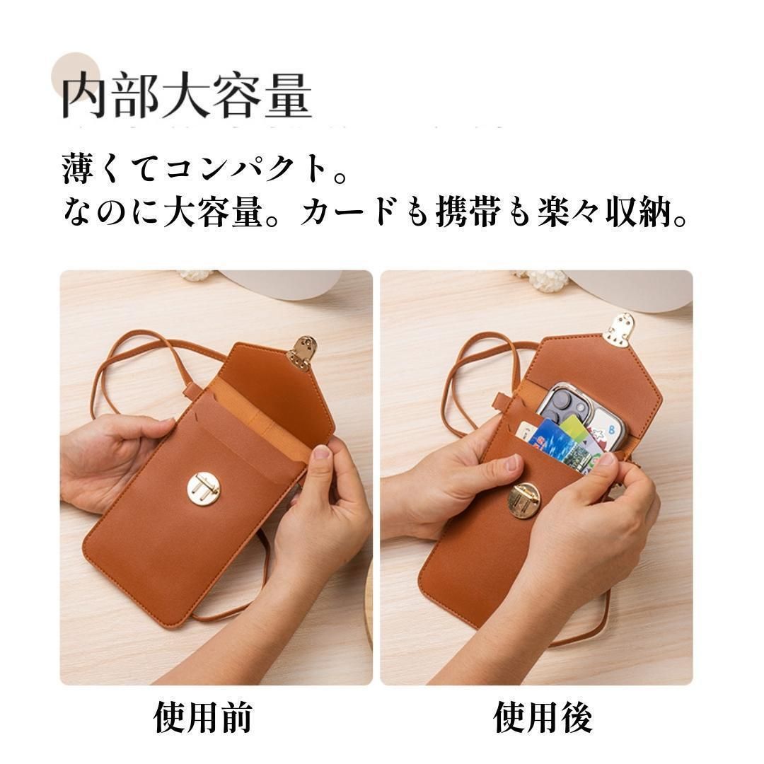 ショルダーバッグ スマホショルダー ケース スマホポーチ スマホポシェット カラビナ付き 入れたまま操作 薄い 軽量 ブラック黒 ブラウン ブルー 財布 ママ人気 大人かわいい 紐 革 高級感 ゴールド