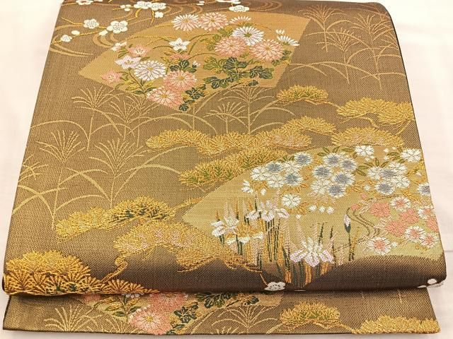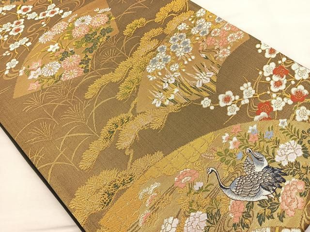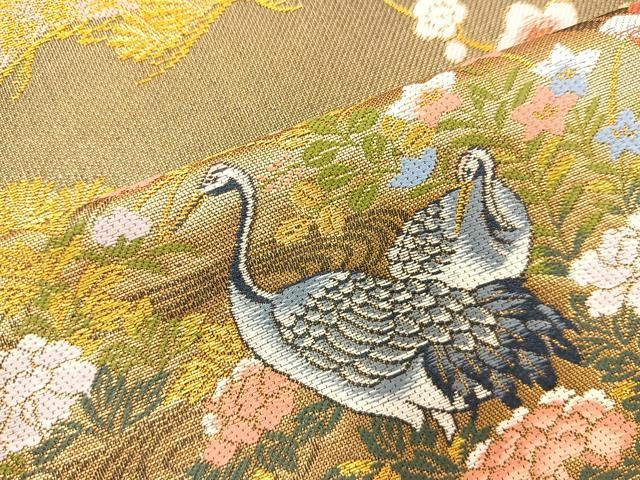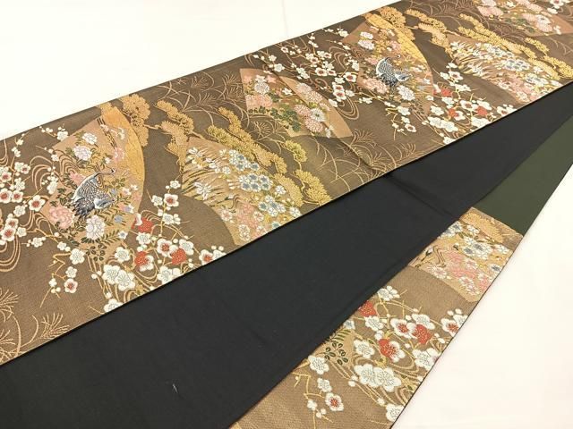 平和屋着物◎六通柄袋帯 地紙花鳥文 黒地 金糸 正絹 逸品 BAAR4887ct