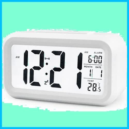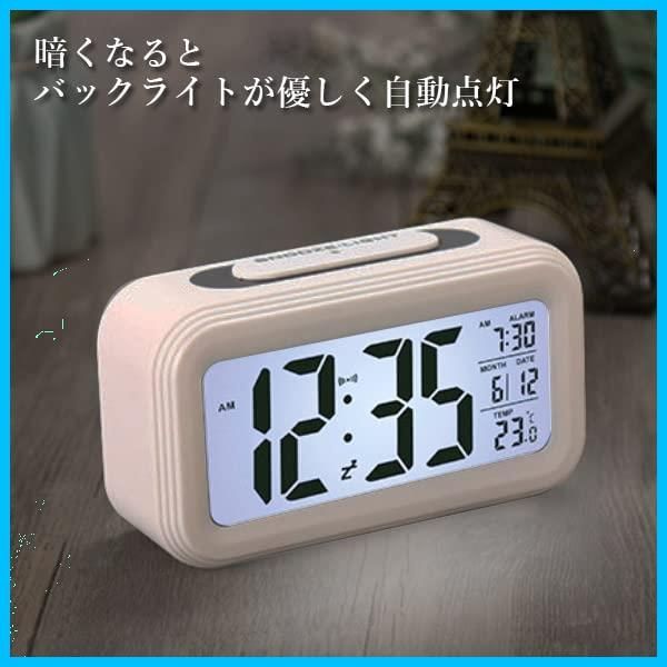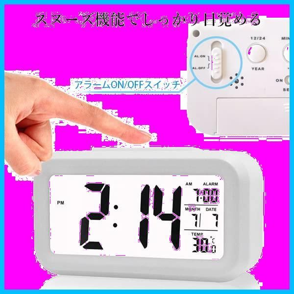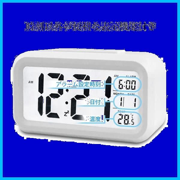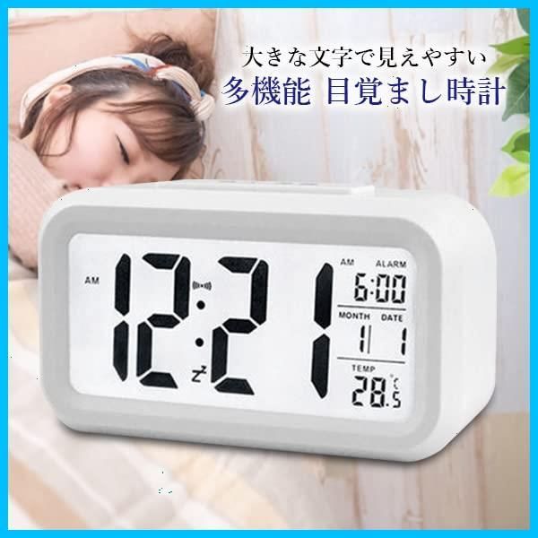 時計 ライト 見やすい デジタル シンプル おしゃれ 温度計 置時計 ホワイト 目覚まし時計 多機能