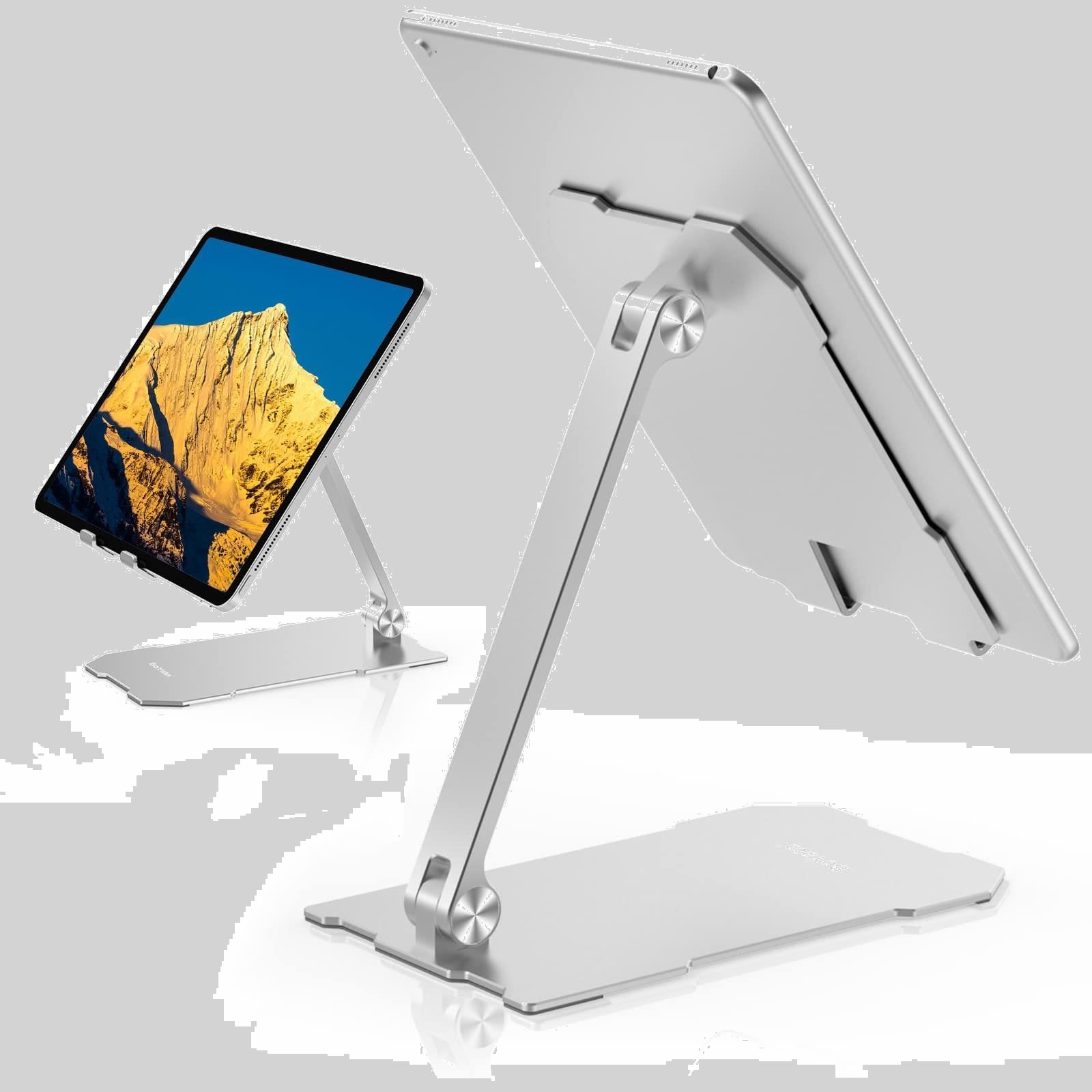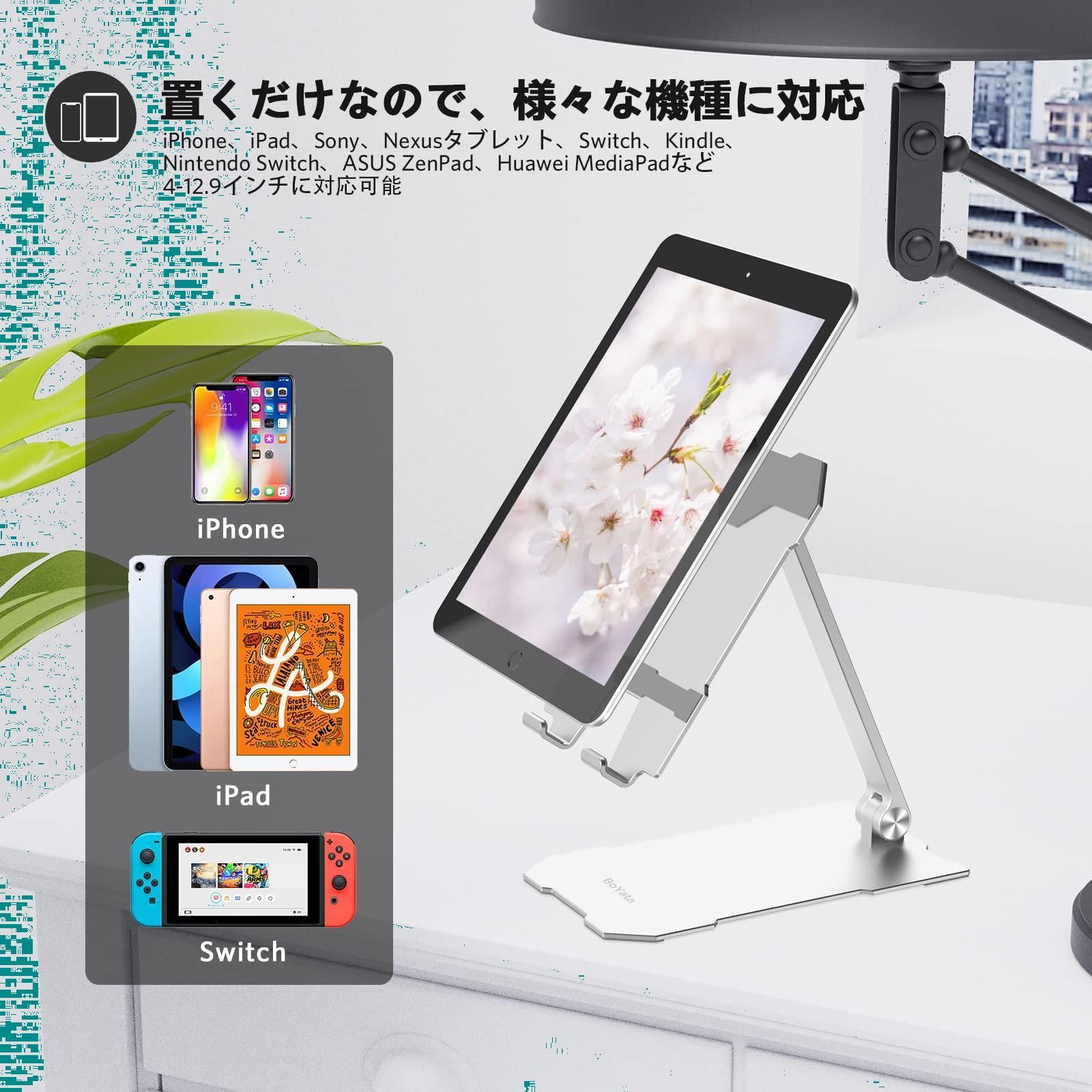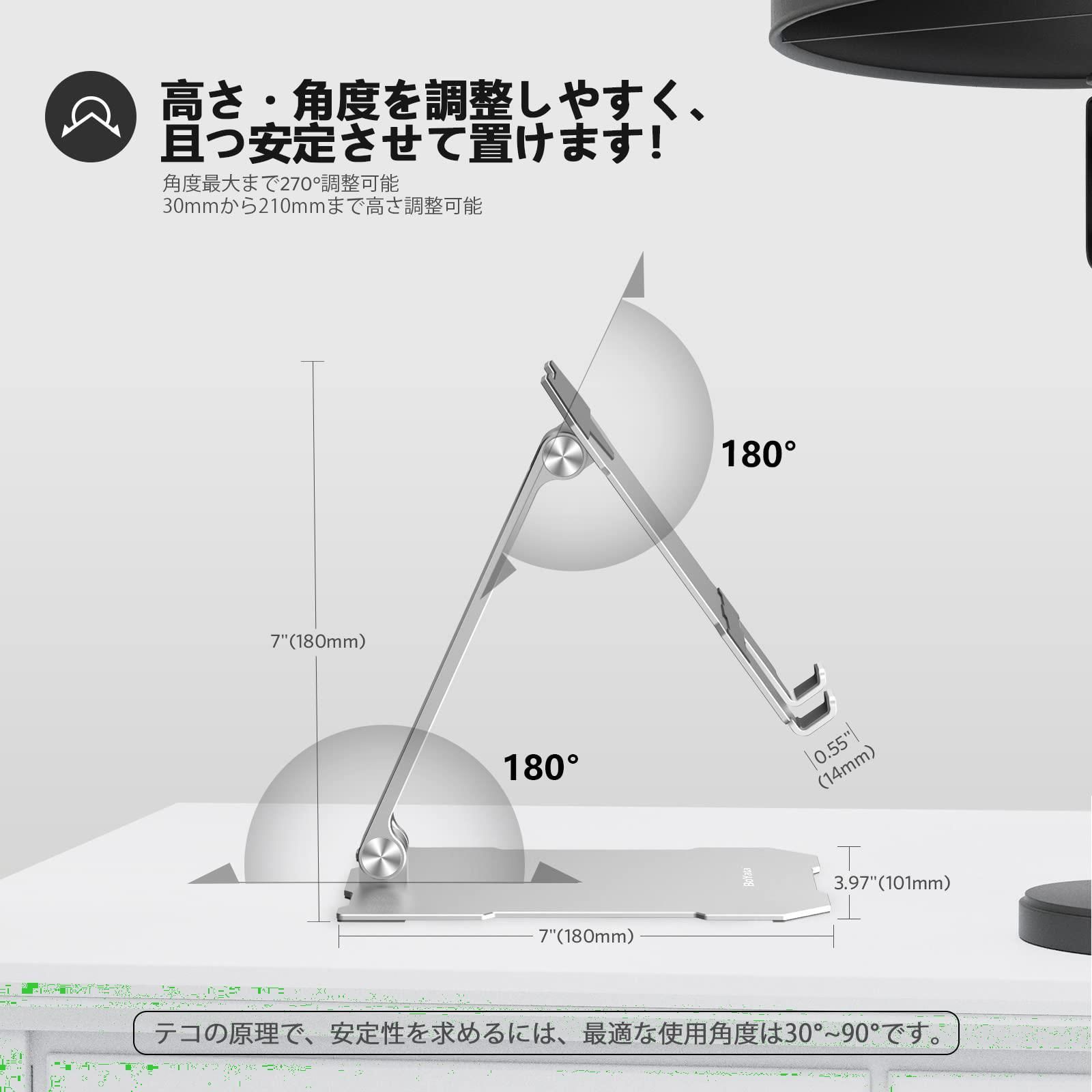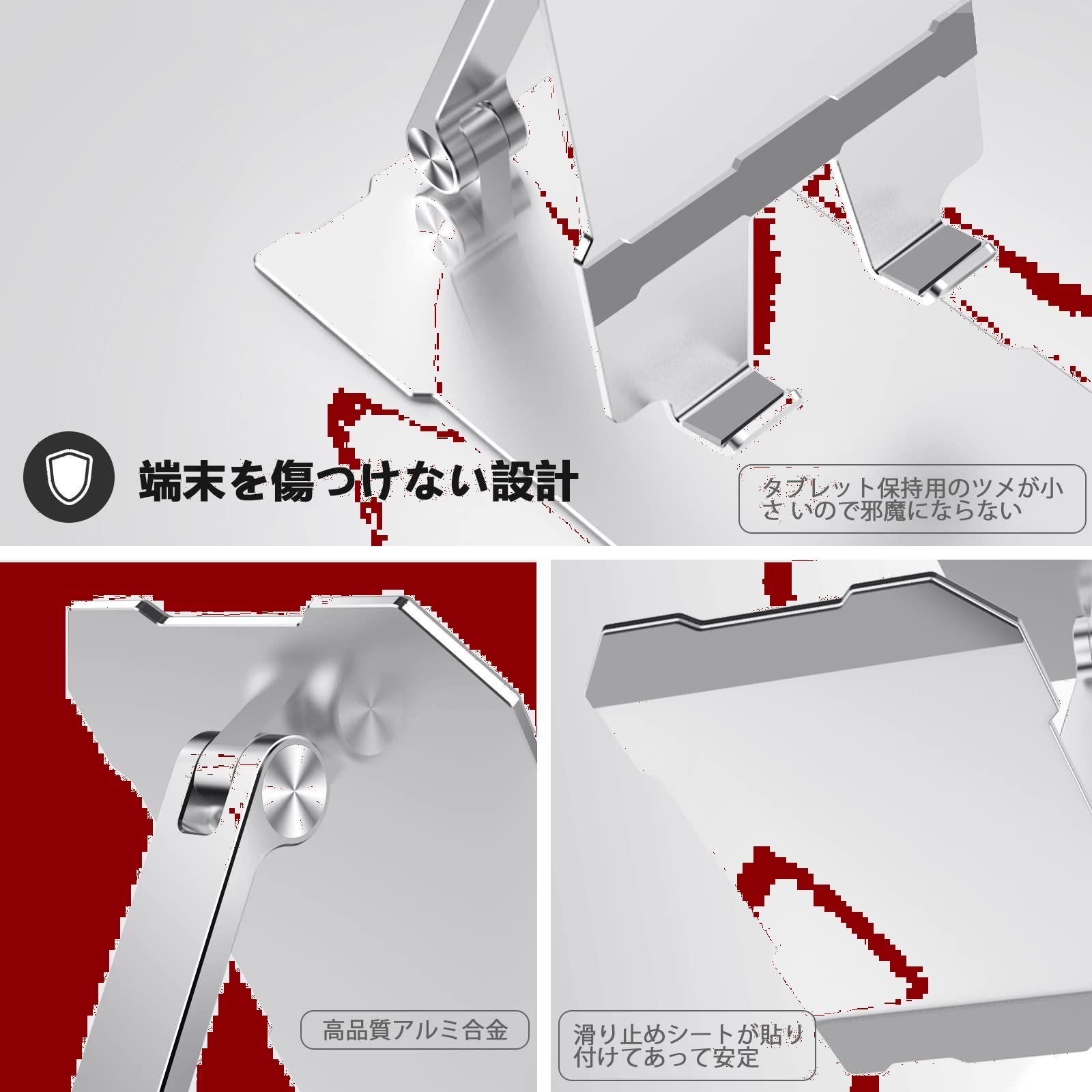 【人気商品】折りたたみ式 軽量 安定性 アルミ製 滑り防止パッド 落下防止 横置き 縦置き 携帯ホルダー 4-12.9インチのデバイスに対応 スマホスタンド スタンド スタンド スタンド pro12.9 シルバー… iPad iPad タブレット BoYata