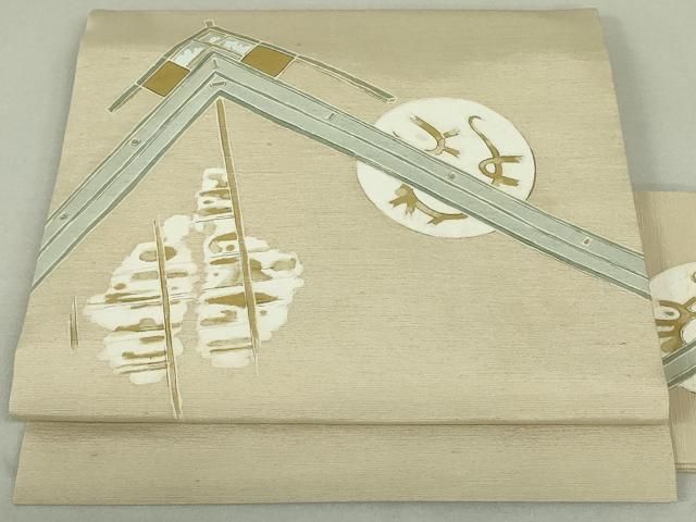 平和屋着物▼九寸名古屋帯 紬地 抽象文様 正絹 逸品 DAAT0229ob