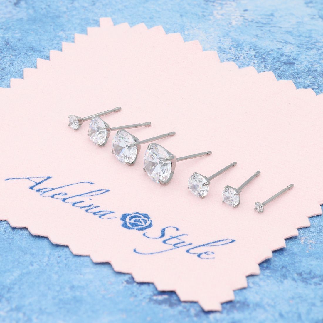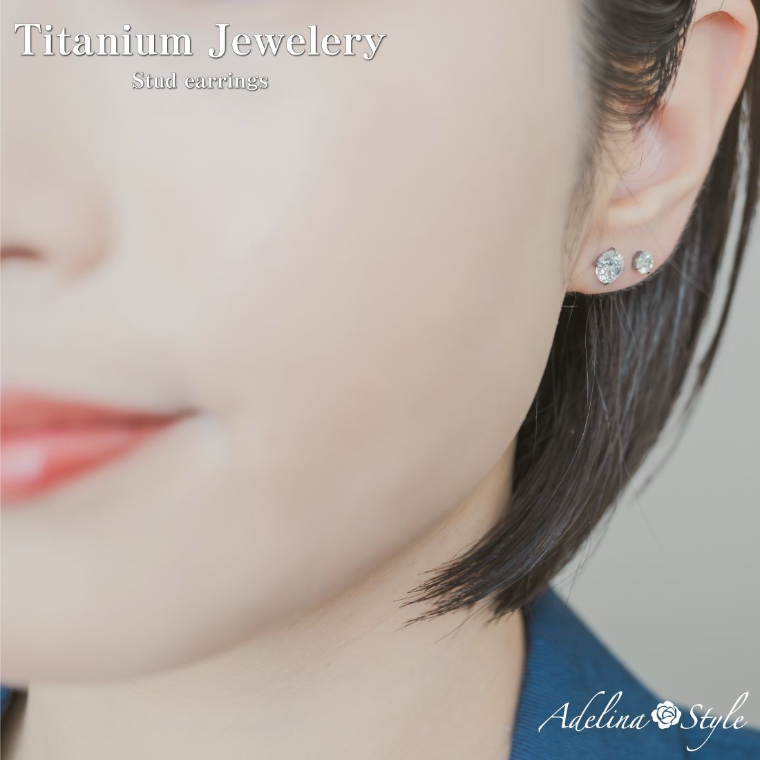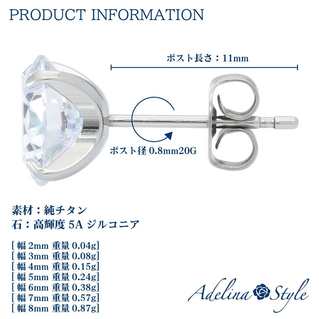 【純チタンピアス:幅3mm 2個入】Adelina Style (アデリナスタイル) 純チタン ピアス メンズ レディース 4爪 5Aジルコニア スタッドピアス 20G 金属アレルギー対応 両耳 プレゼント