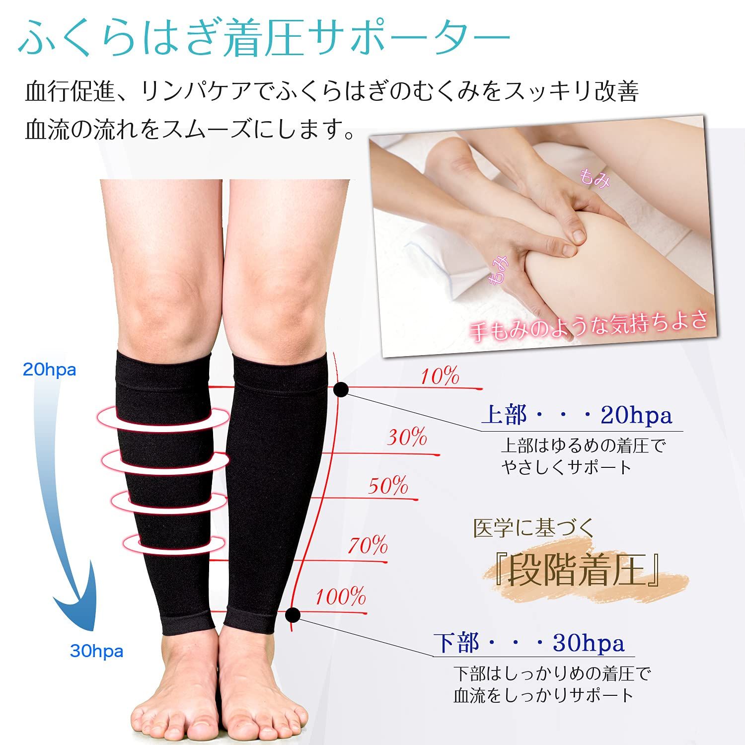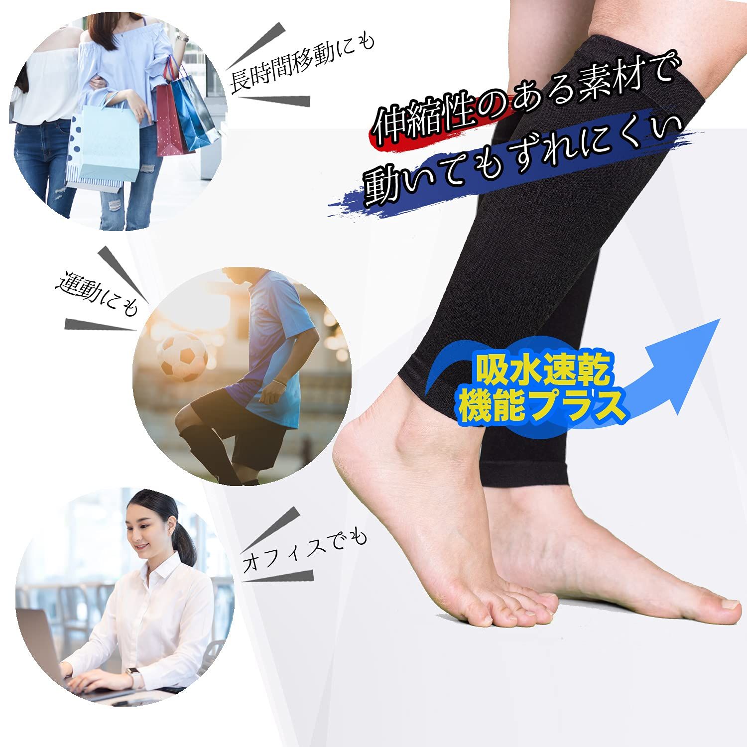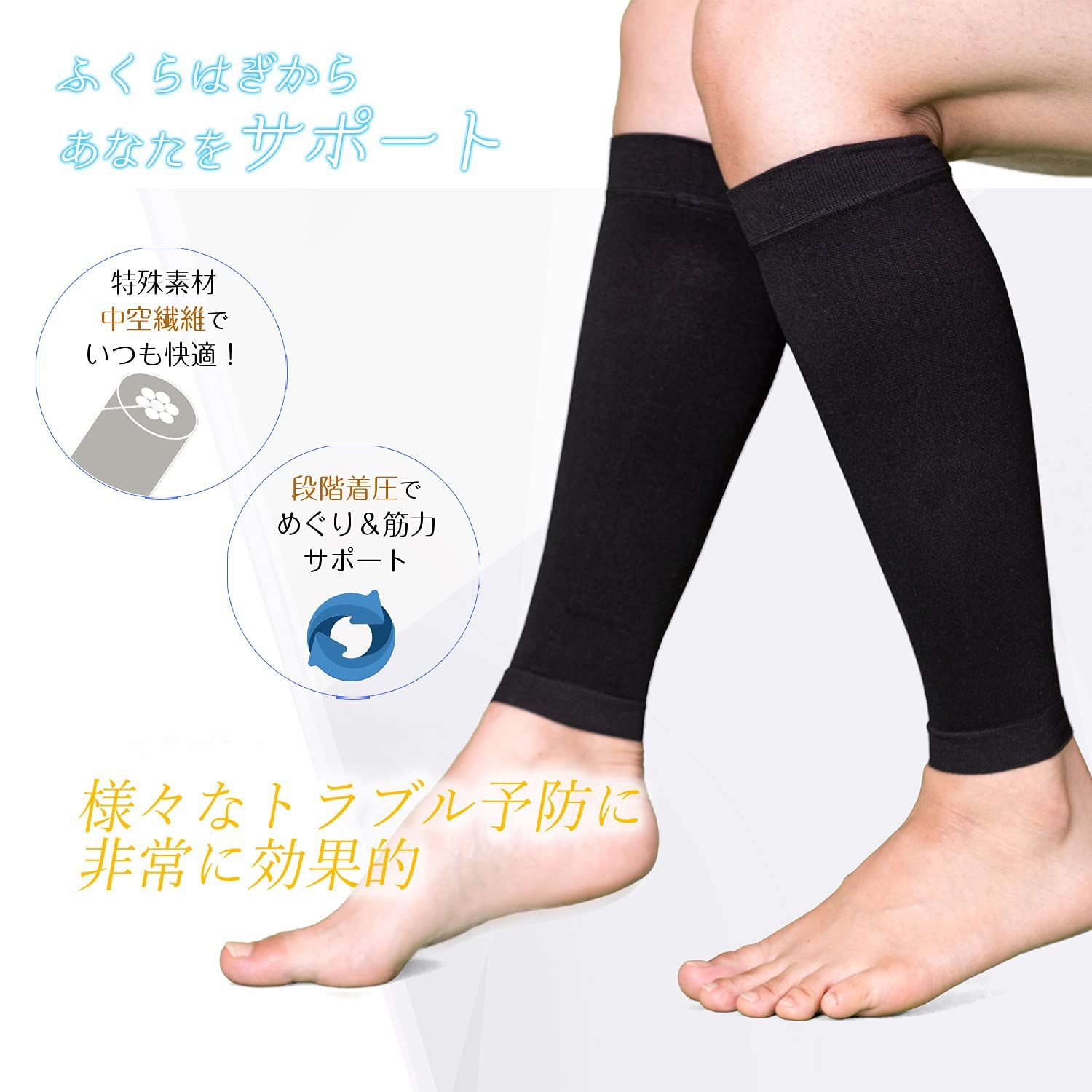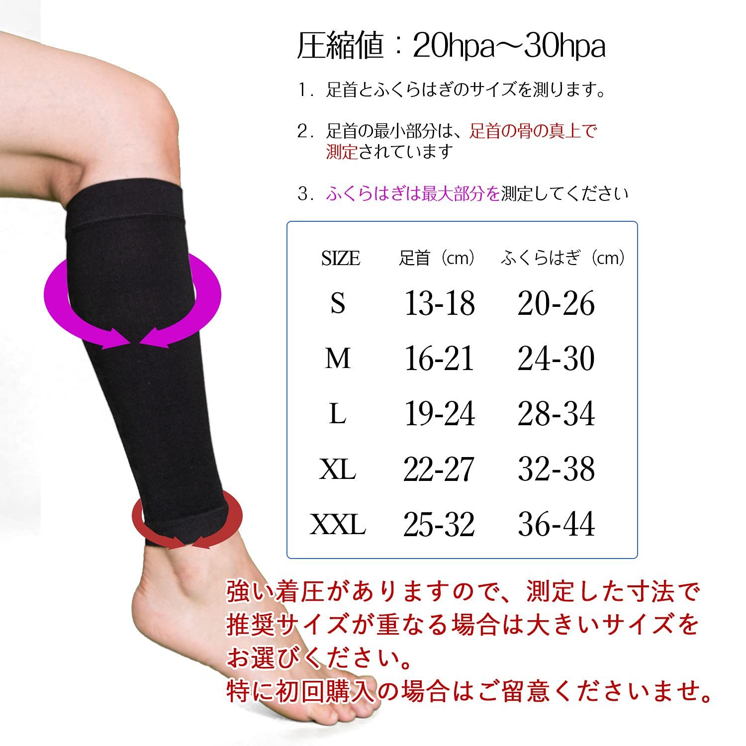【数量限定】コンプレッション 薄型 段階着圧 運動 強圧 ウォーキング 男女兼用 30-20hpa メンズ 2枚組(1足) レディース (ブラック ふくらはぎサポーター XXL)