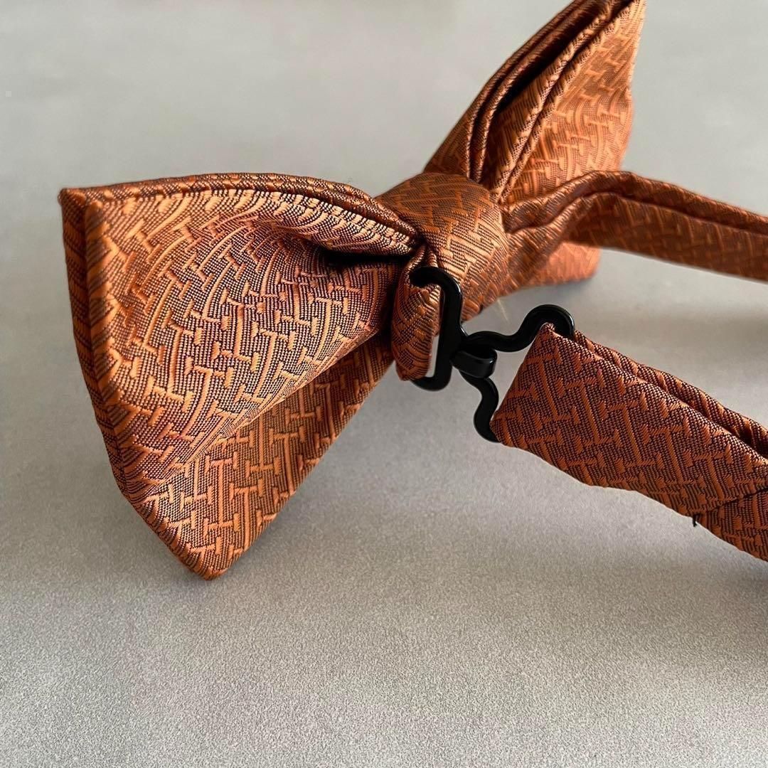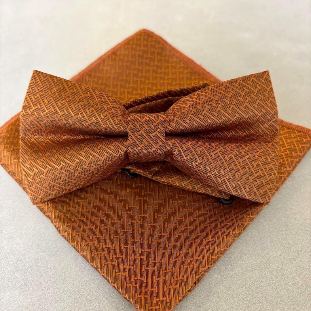 蝶ネクタイ テラコッタ オレンジ 結婚式 メンズ 新郎 二次会 お洒落 ワンタッチ フック式 ボウタイ ハンカチチーフ 洗濯可能 無地 フォーマル カジュアル ブライダル n18