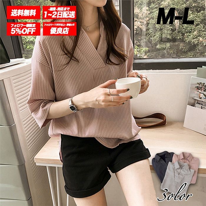 ストライプ シャツ ブラウス 綺麗め レディース 五分袖 七分袖 女性 トップス ルーズシャツ オーバーサイズ 着痩せ ゆったり 軽い 涼しい 大人 抜け感 春 夏 秋 ▲ピンクベージュ▲ /全国送料無料/ /限定販売/ /追跡番号付きで安心/ ♢