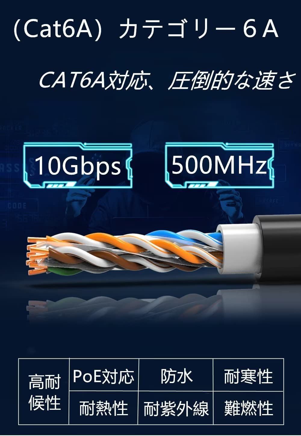 新品 耐候性 難燃性 紫外線 高耐久 インターネットケーブル コネクタ付 ケーブルクリップ付属 屋外用 LAN配線 カテゴリー6A PoE対応 アウトドア 2重被覆 屋外仕様 十字セパレーター LANケーブル 防水 屋外 CAT6A ブラック 40M