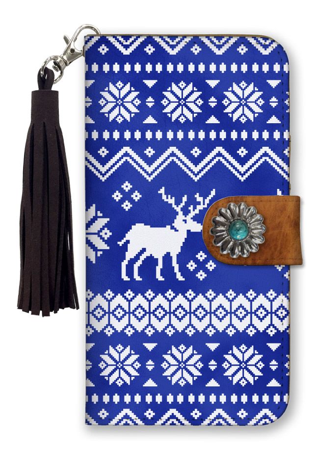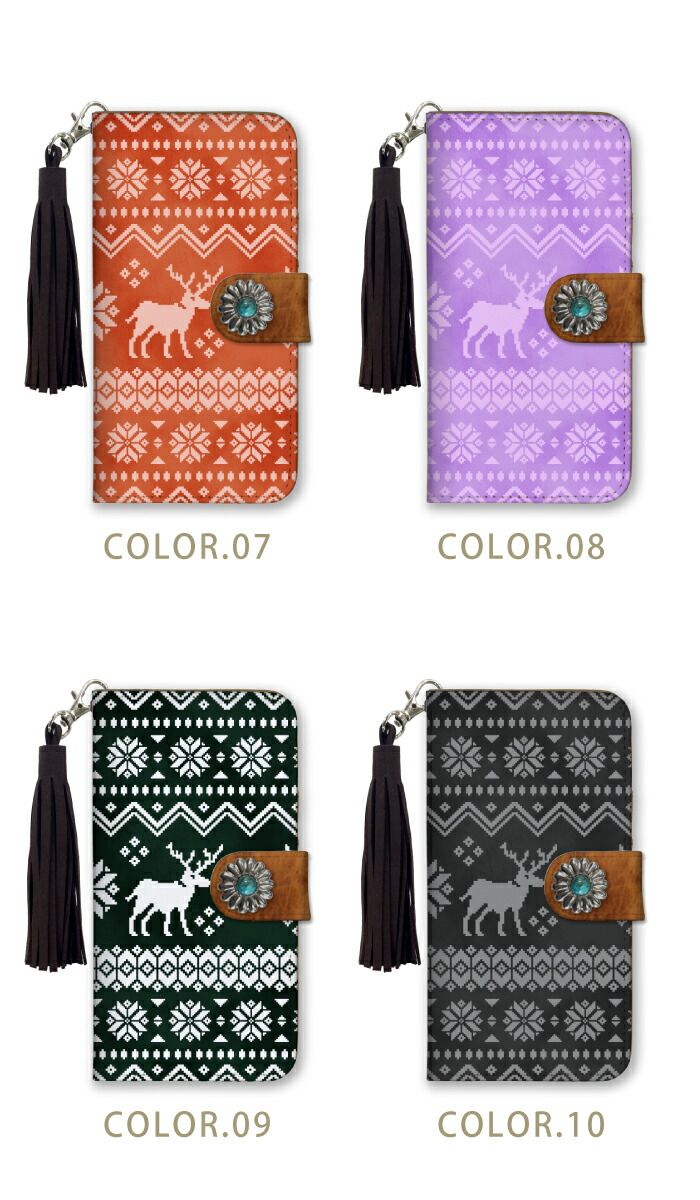 Xperia 1 VII SO-51F SOG15 A501SO ケース 手帳型 エクスペリア 1 7 スマホケース フリンジ ストラップ付 コンチョ ノルディック柄 フェアアイル トナカイ かわいい オレンジ ピンク ネイビー カラー05