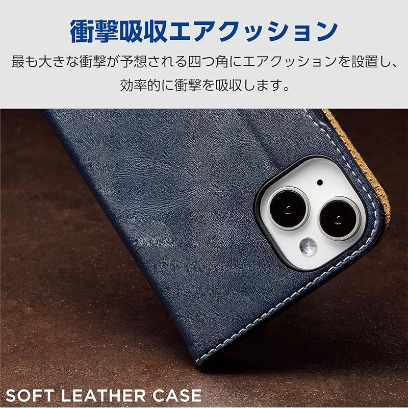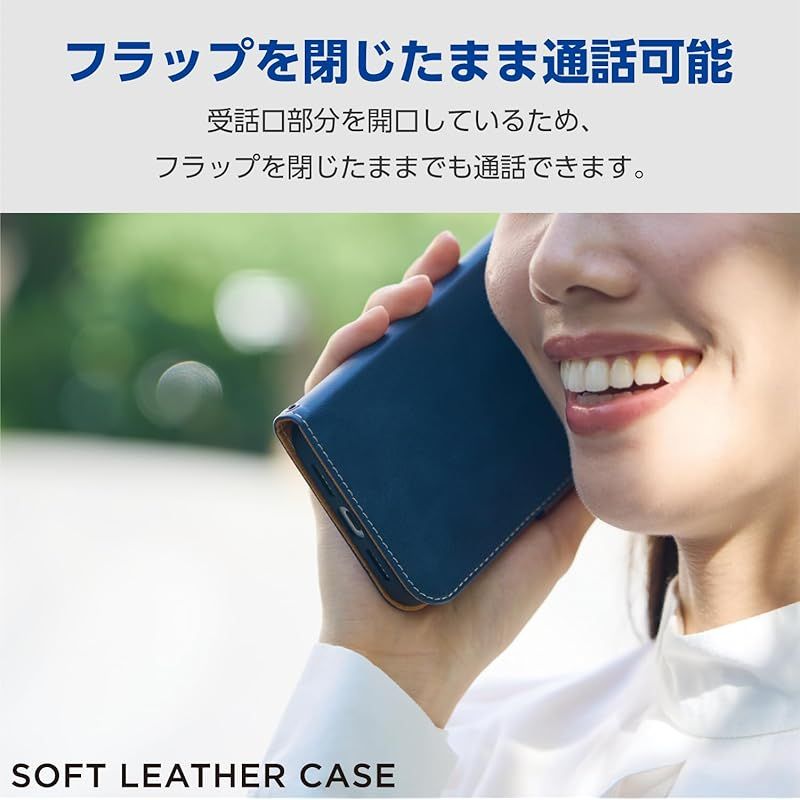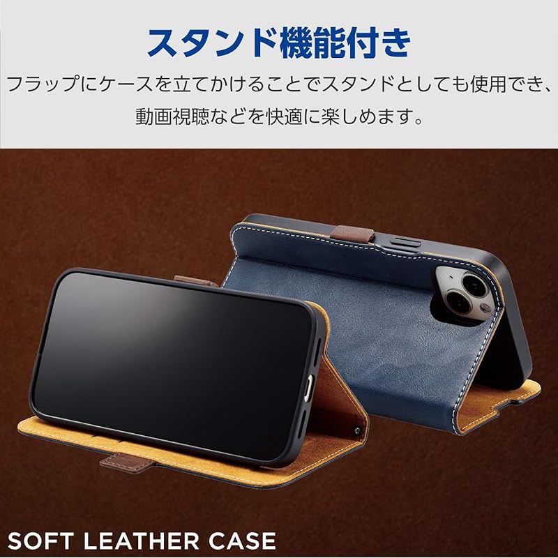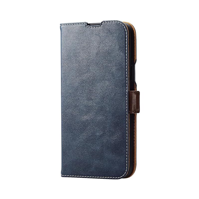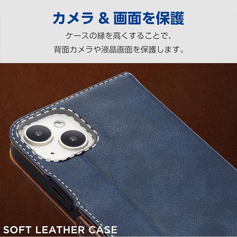 エレコム iPhone15 Plus ケース 手帳型 レザー 革 マグネット開閉 カードポケット×2 スタンド機能 ストラップホール付き ネイビー PM-A23BPLFYNV 1