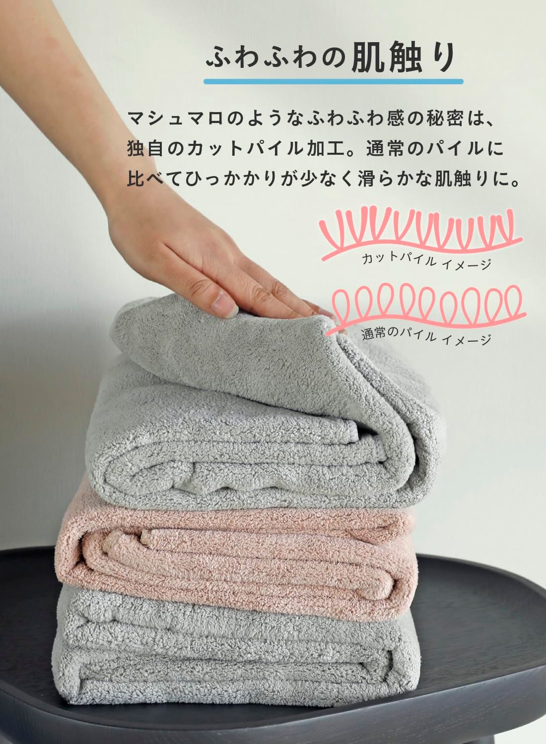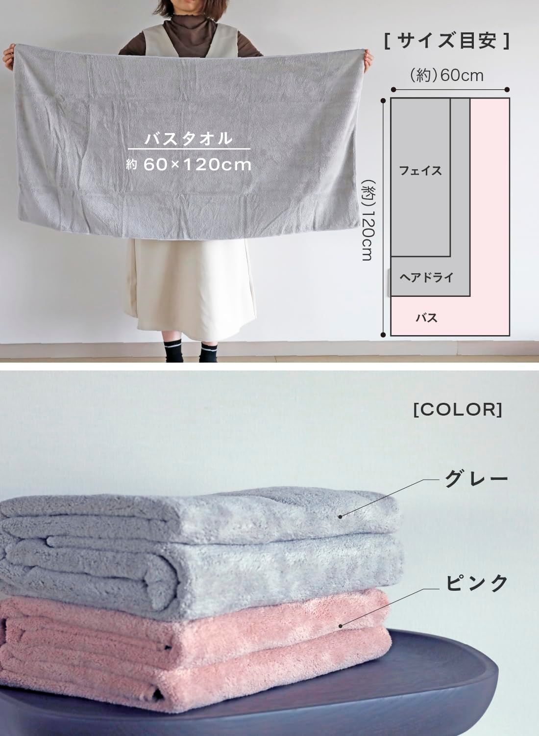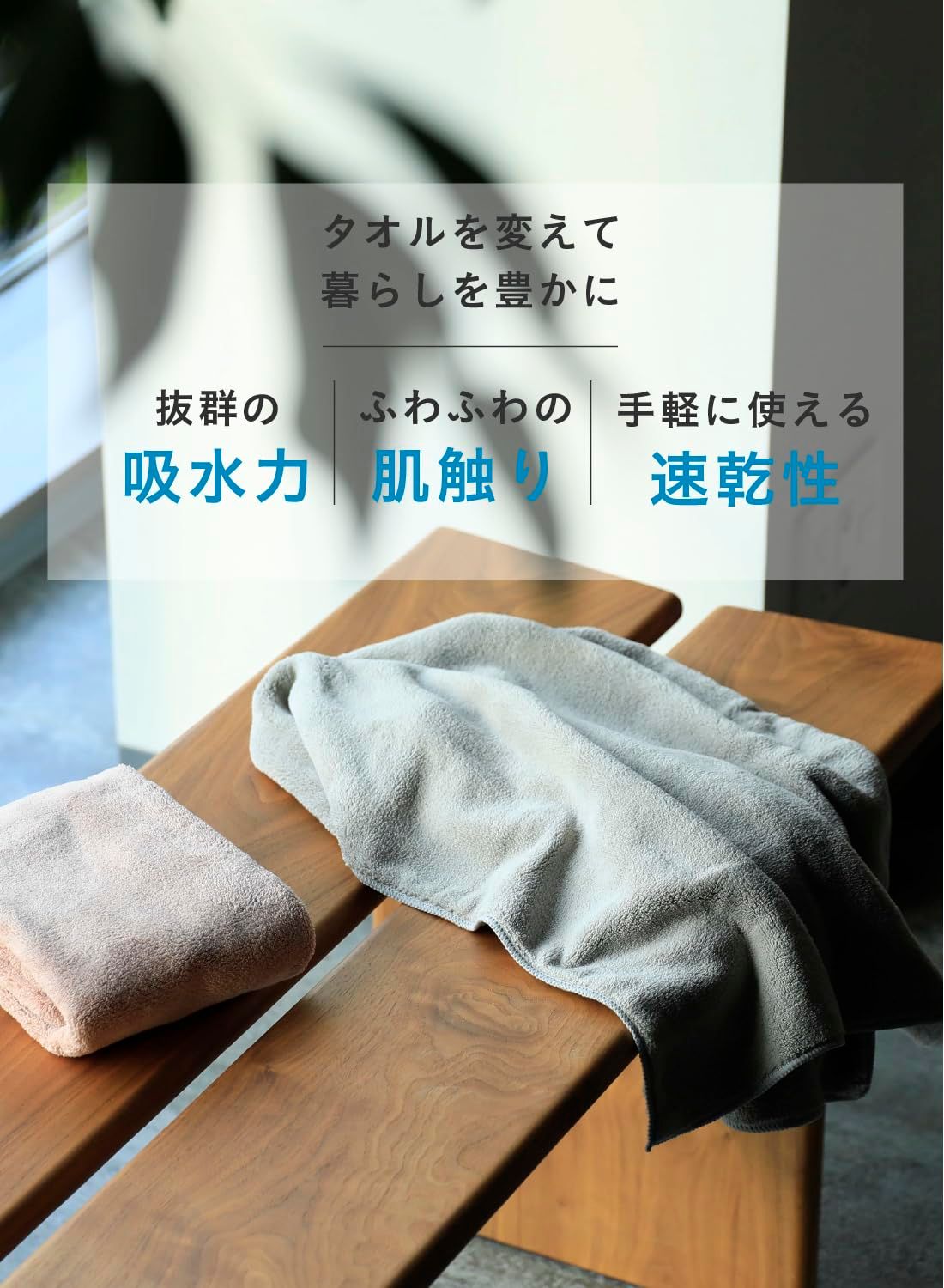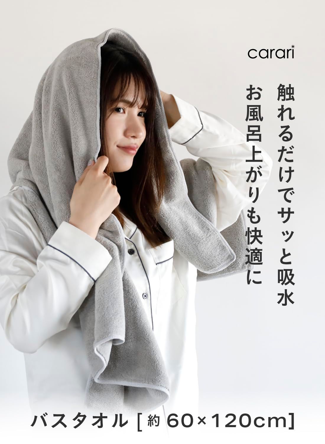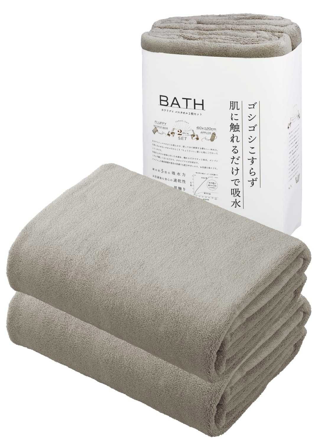 シービージャパン(CB JAPAN) carari(カラリ) バスタオル 吸水力5倍のマイクロファイバー DAY グレー 2枚組 繊維の隙間に素早く吸水 速乾 マシュマロ肌触り ふわふわもちもち 60×120cmカラリデイ