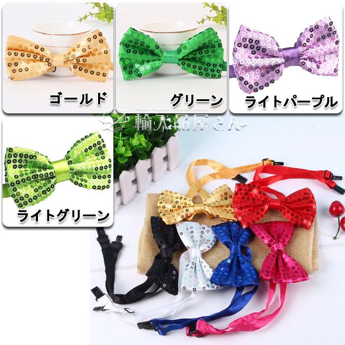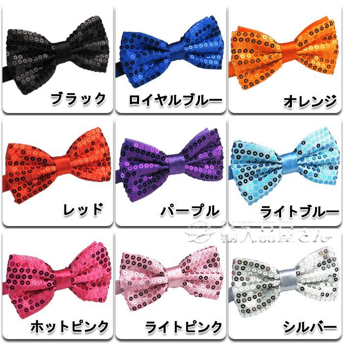 蝶ネクタイ スパンコール 大人 キッズ子供用 おしゃれ メンズ 発表会 コンサート シルバー オレンジ白ホワイト黒ブラック赤レッド ボウタイ 蝶タイ無地ダンス衣装 水色グリーン緑ピンク キラキラ コスプレ衣装 結婚式ウェディング フォーマル★2