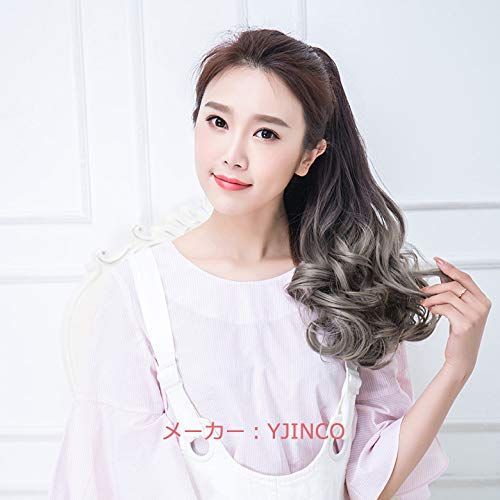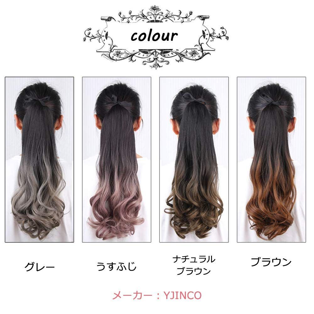 【在庫セール】YJINCO グラデーションカラー エクステンション ポイントウィッグ ポニーテールウィッグ 巻き髪 リボン付き エクステ ロング カール 簡単クリップ 耐熱 選べる4色 YJWM007-ushi