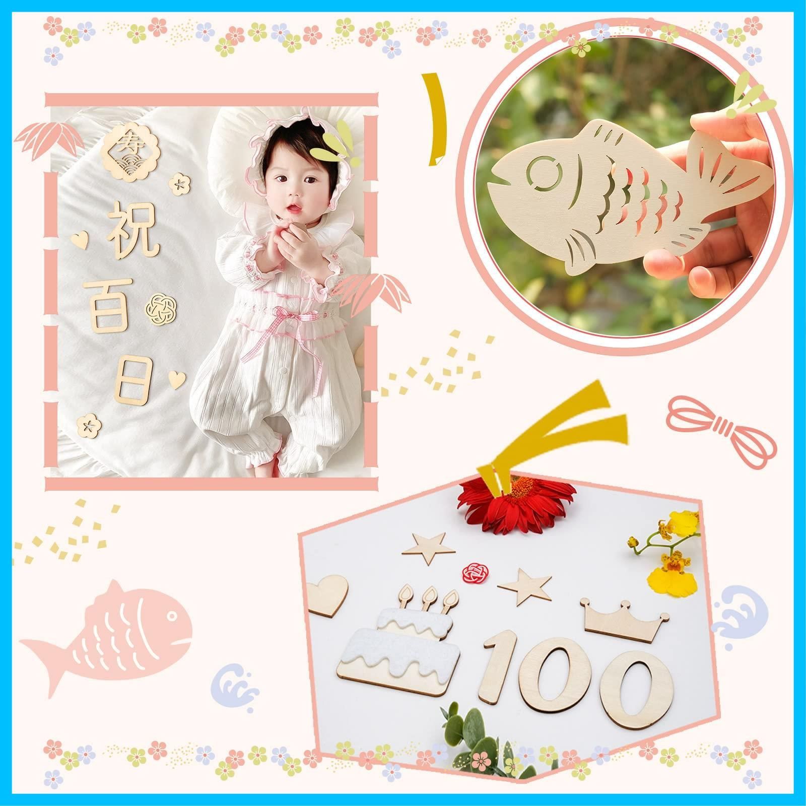 【在庫処分】お食い初め 飾り 誕生日 飾り 月齢フォト 100日祝い 写真道具 撮影アイテム 24枚セット 記念日フォト 新生児 木製 成長記録に レターバナー 赤ちゃん 出産祝い 百日祝い 男の子 女の子 Oaec (ケーキ-24枚セット)