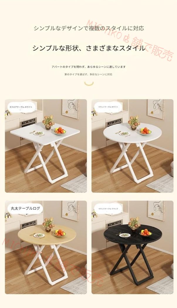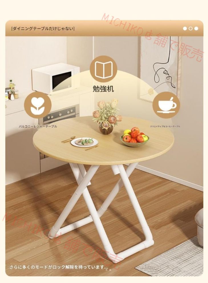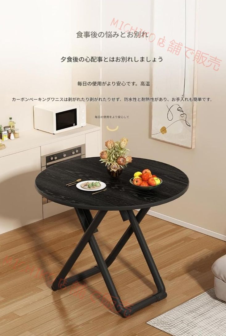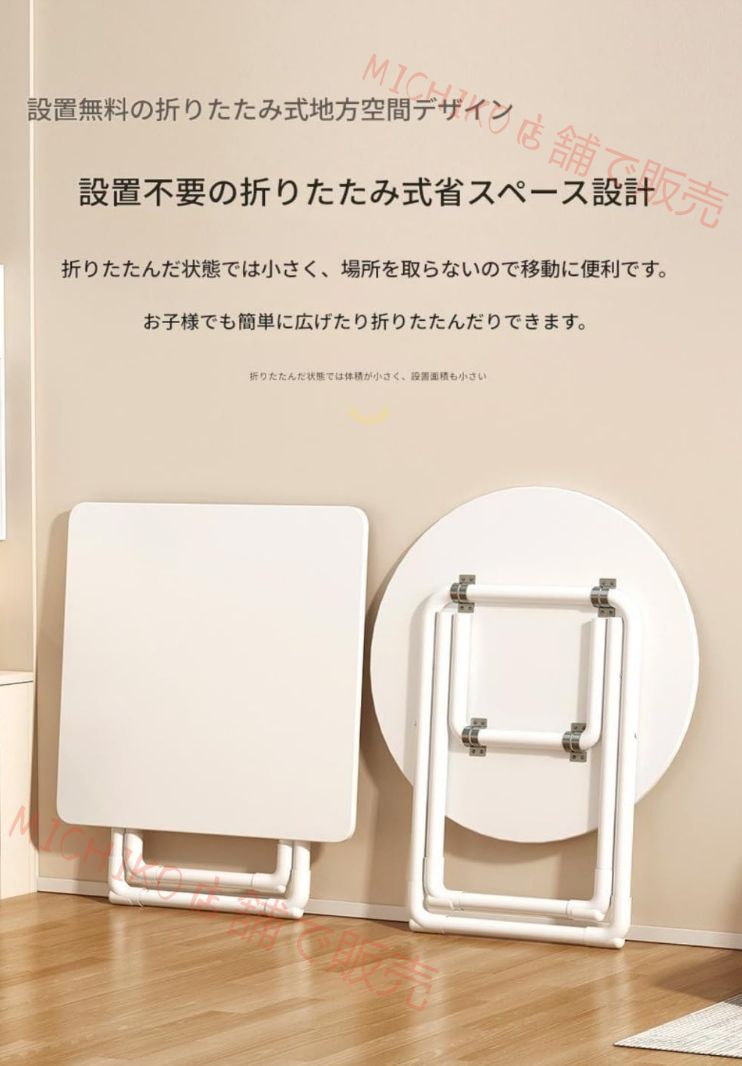 折りたたみテーブルダイニングテーブルラウンフレーム丈夫で耐久組み立て簡単 ドハイテーブル丸型折り畳みスチール製