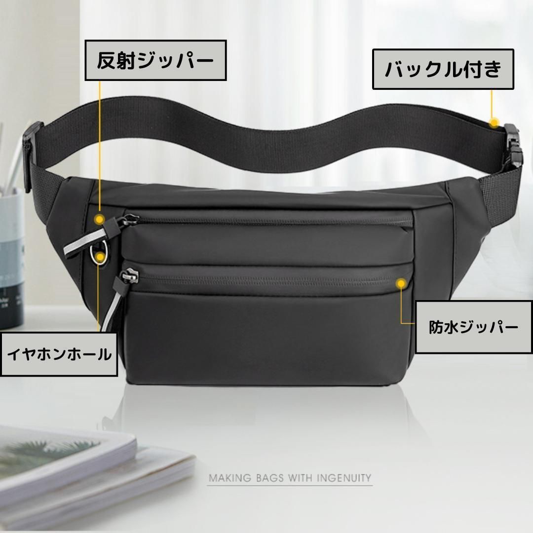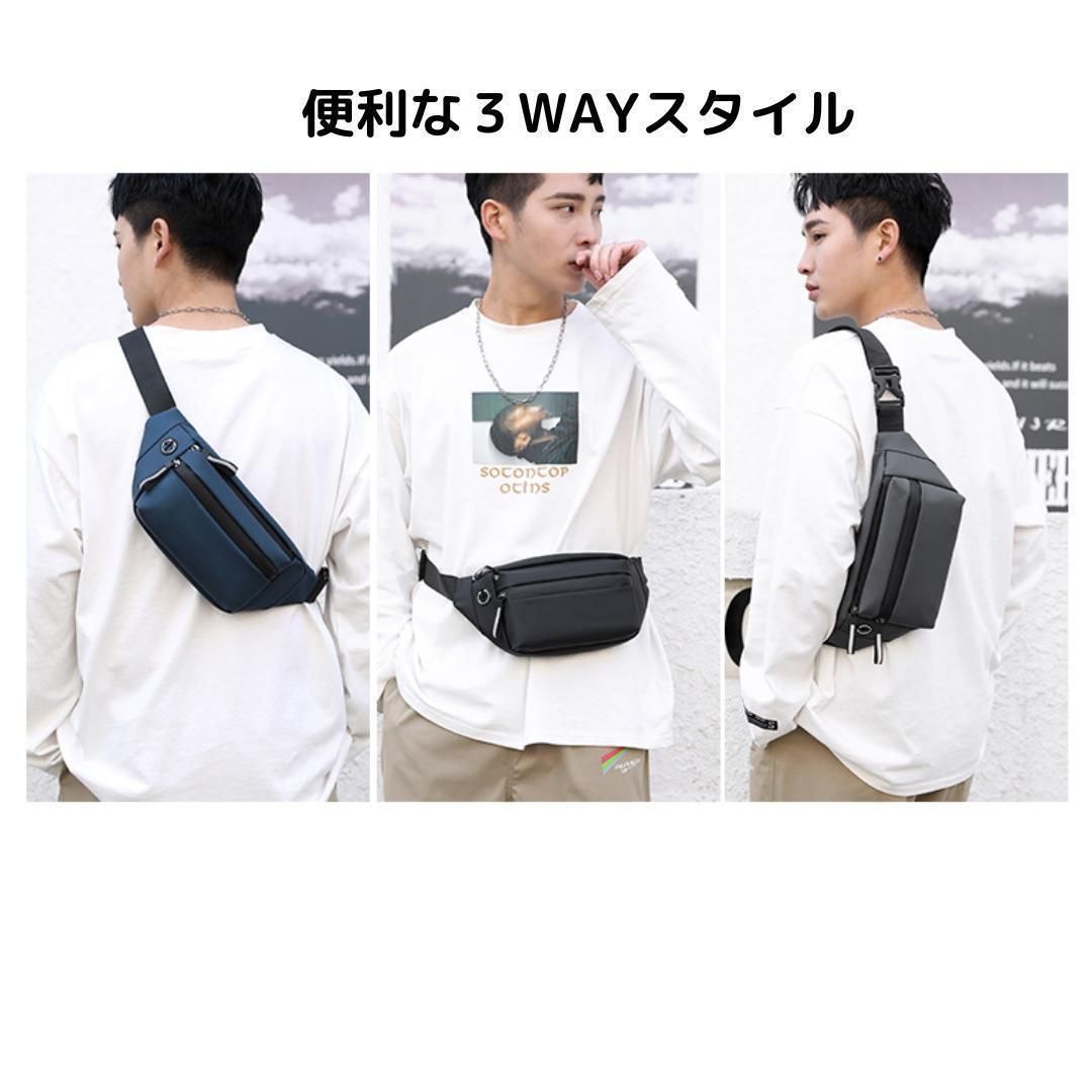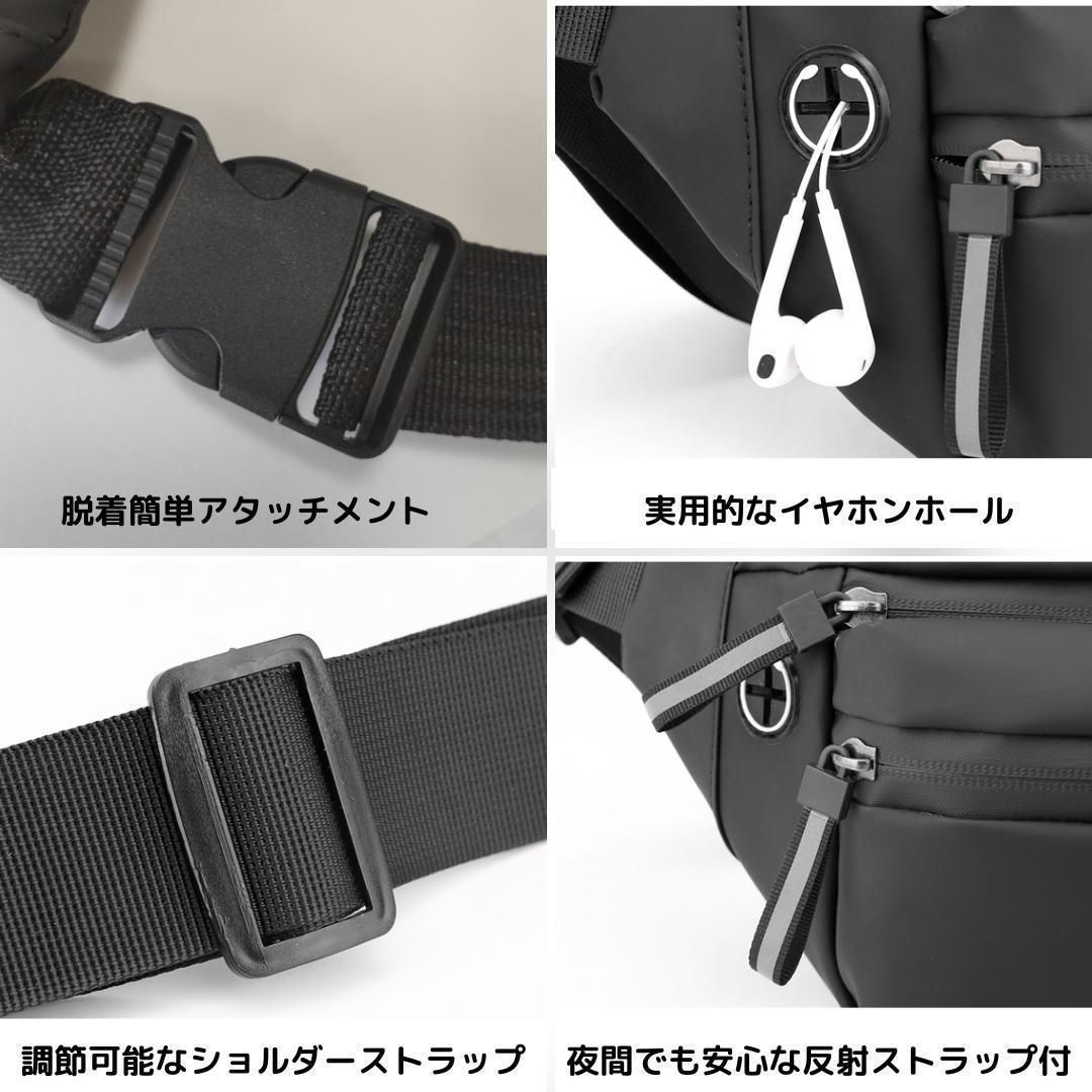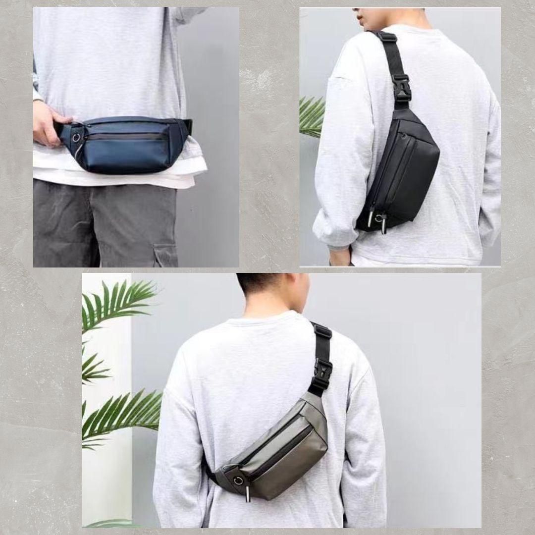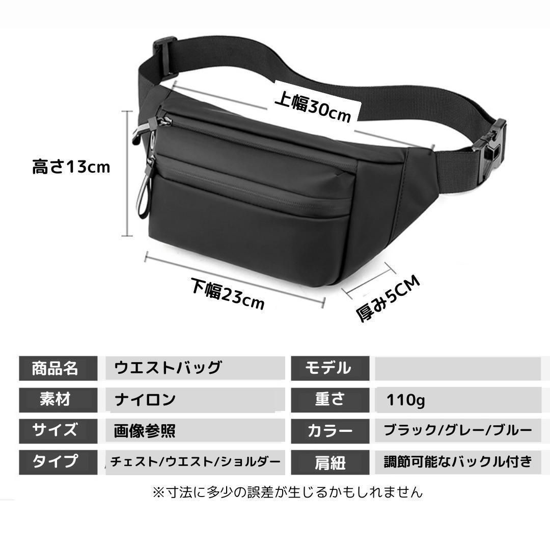 【新品】ナイロンコーティング ボディバッグ<グレー>3WAY ウエストポーチ ウエストバッグ ワンショルダー オシャレ 軽量 防水 ポケット 財布 スマホ 止水ファスナー 反射パーツ 外出 ウォーキング カジュアル スポーツ ランニング ジョギング 灰色
