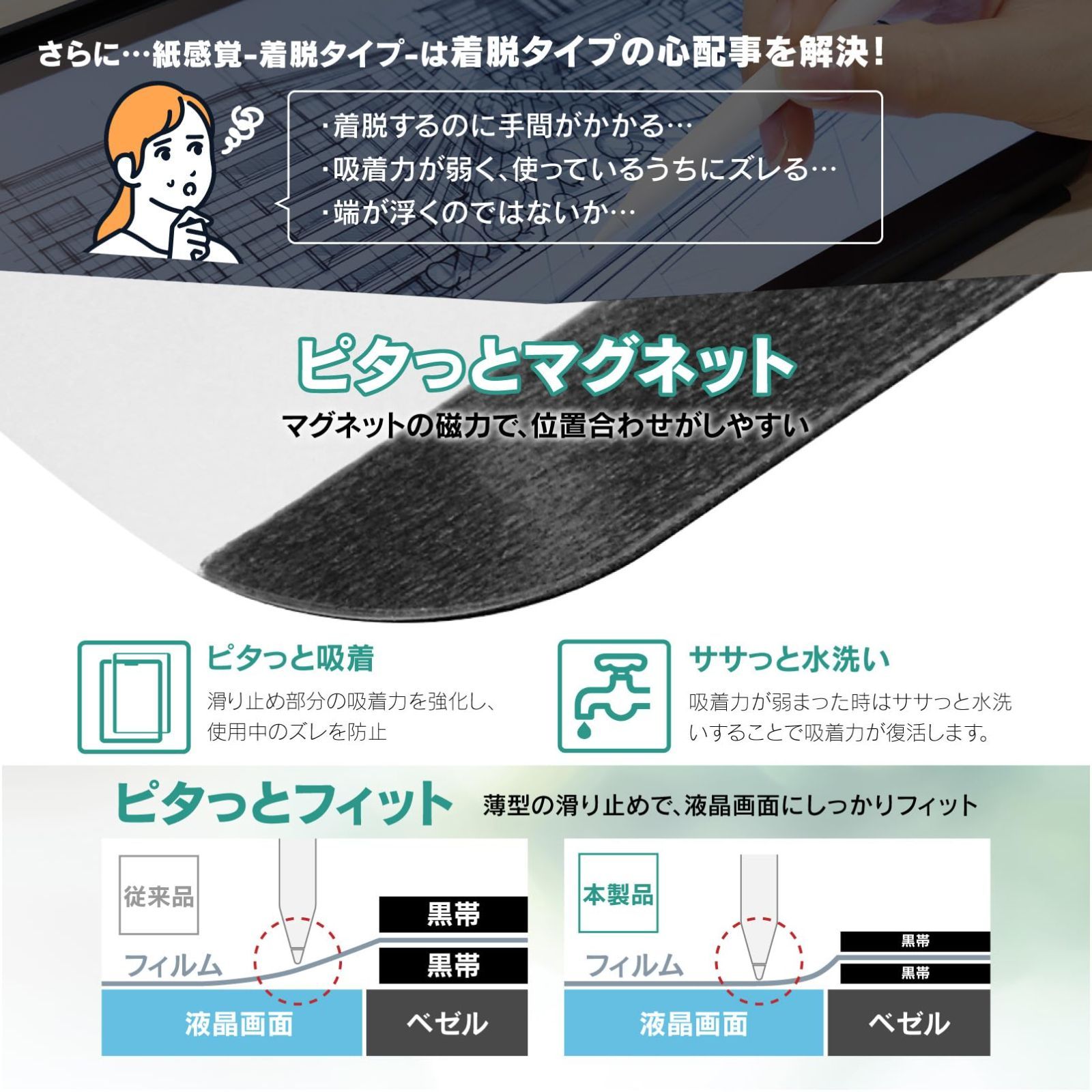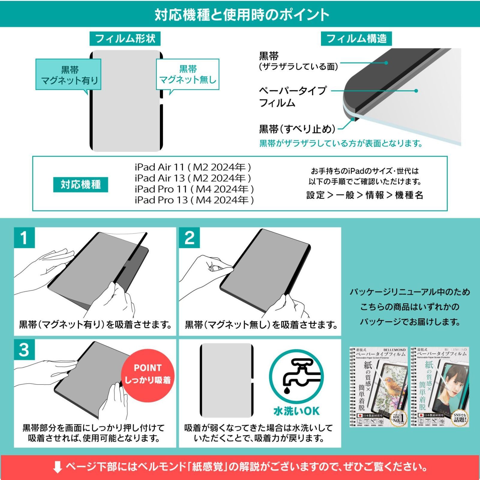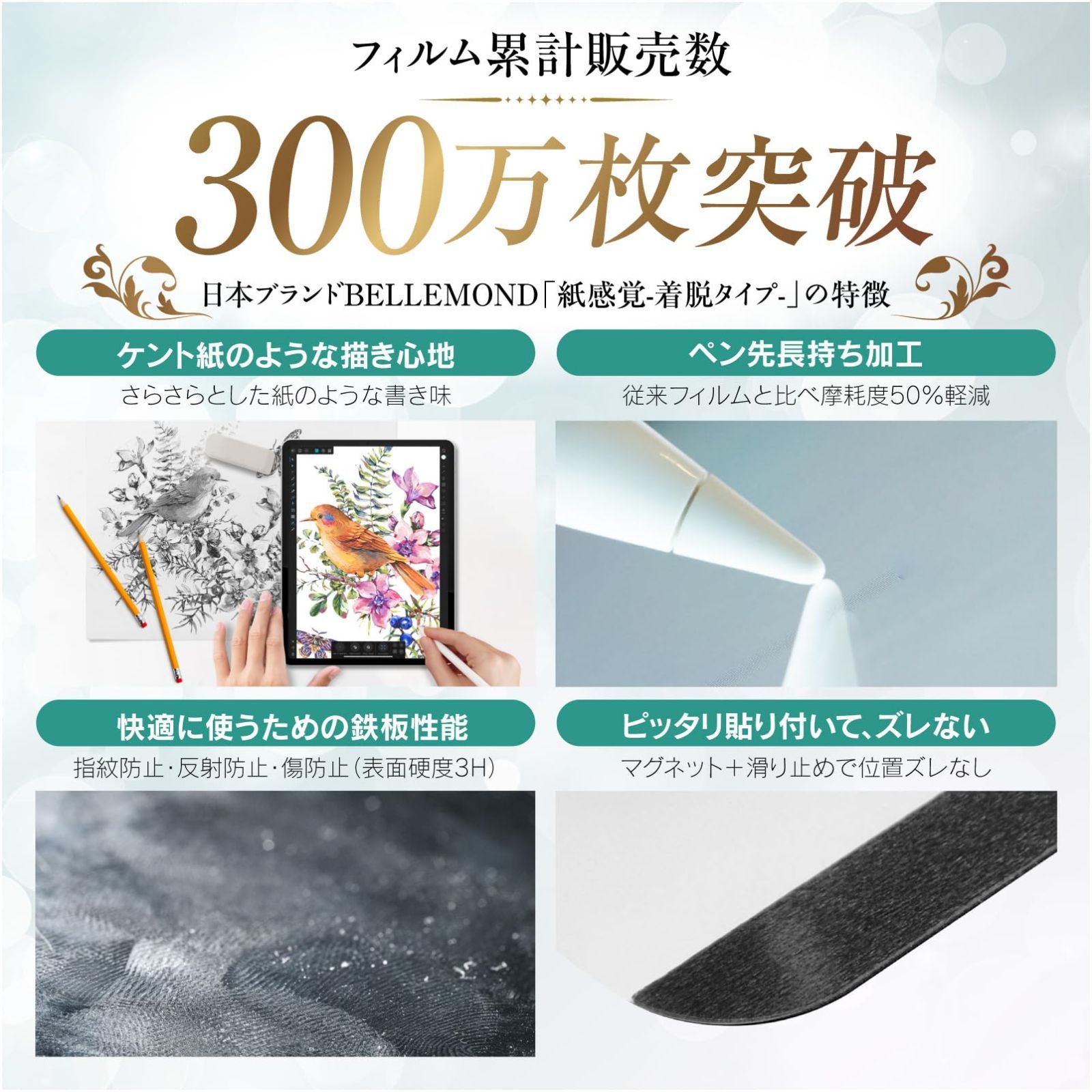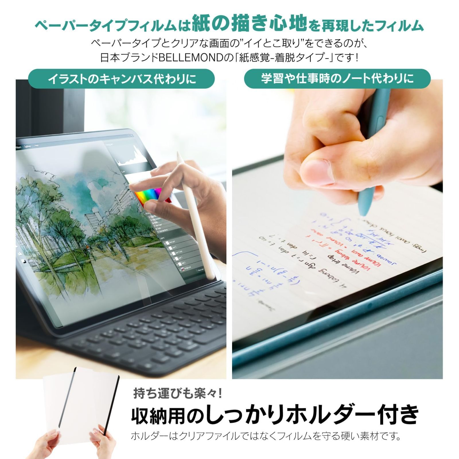 ベルモンド 新型 iPad Air 11 用 着脱式 ペーパータイプ フィルム マグネット タイプ | (M3 2025 / M2 2024) 対応 | ケント紙タイプ 紙のような描き心地 反射防止 保護フィルム アイパッド 【 紙感覚 】 BELLEMOND