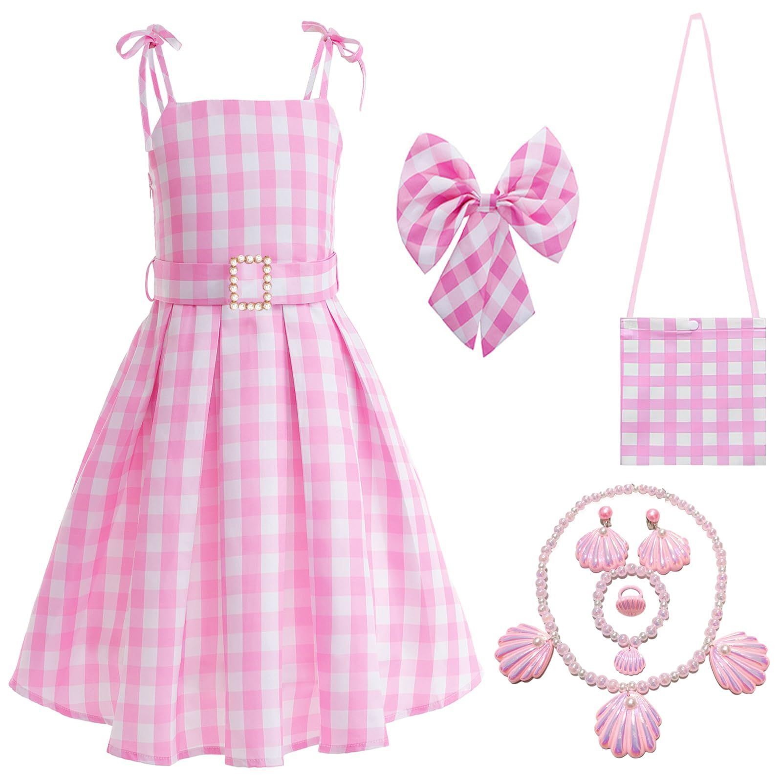【在庫処分】変装 メイド服 キャラクター アニメ ステージ服 コスチューム バービー バービー ベビードール スカート ハロウィーンの仮装 ピンク 人気 映画 ハロウィン cosplay アクセサリー7点セット Barbie コスプレ 全セット [Mproce