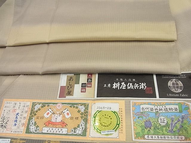 平和屋本店■極上 道中着 本場染大島紬地 銀座もとじ 武島織物謹製 単衣 横段文 証紙・たとう紙付き 逸品 未使用3s1700