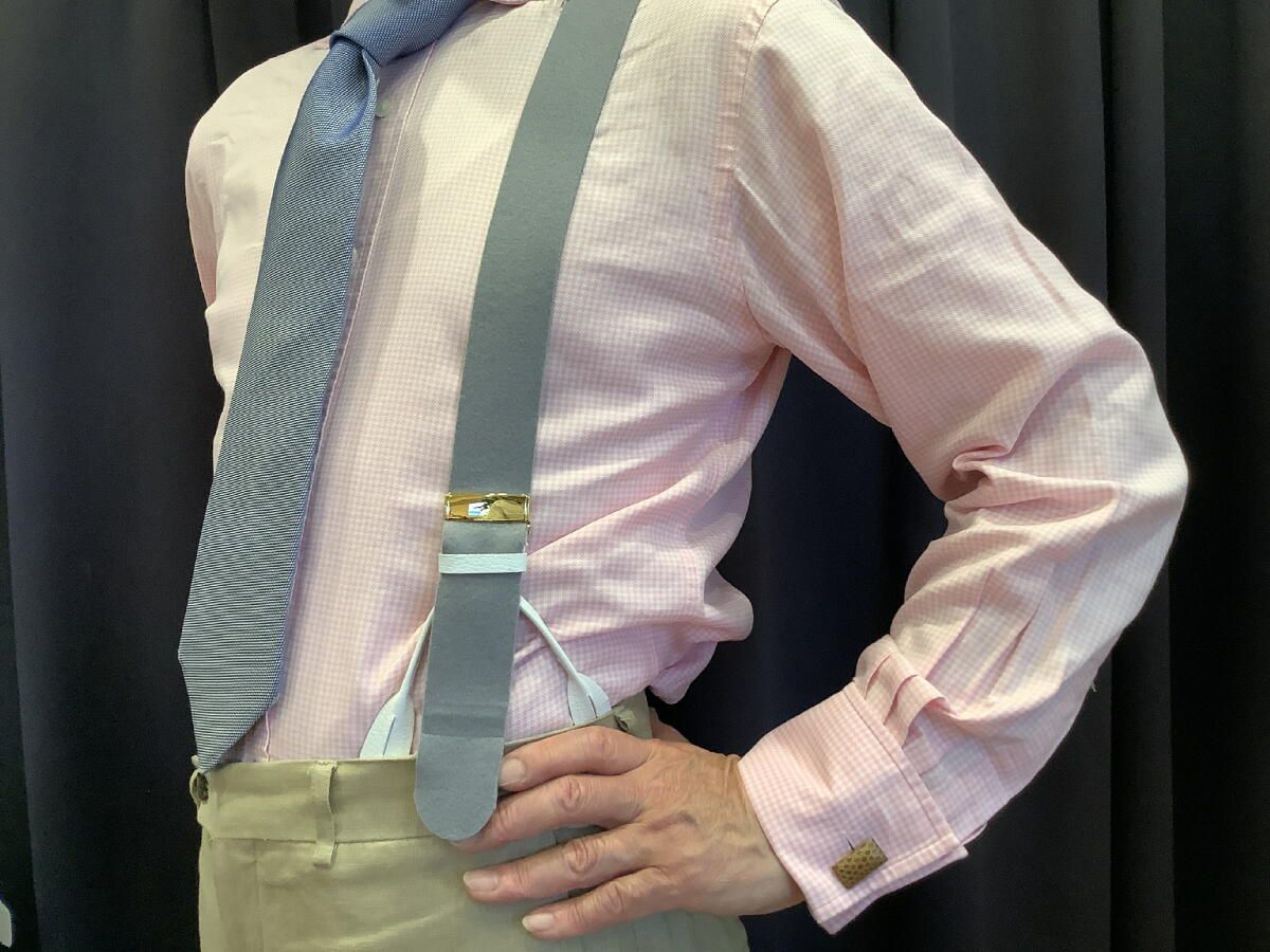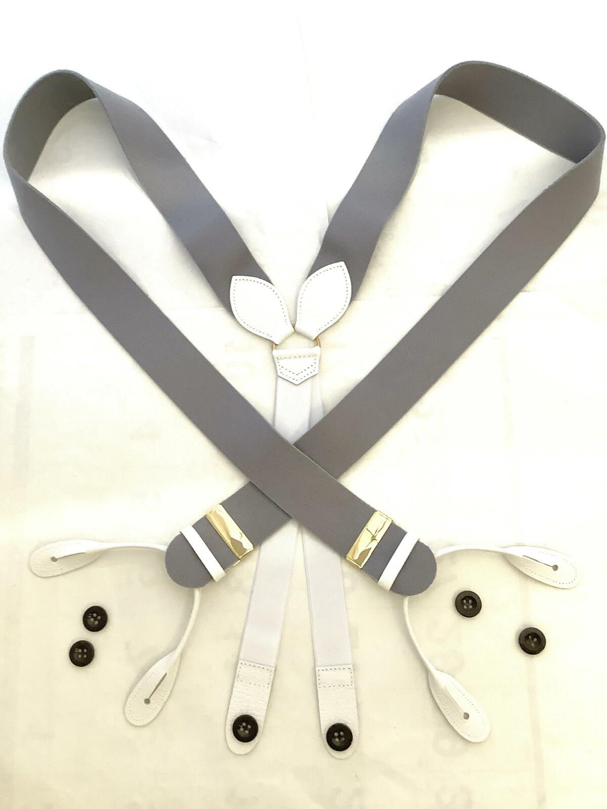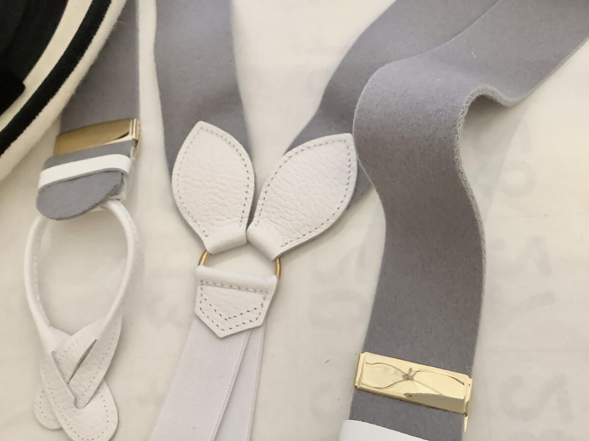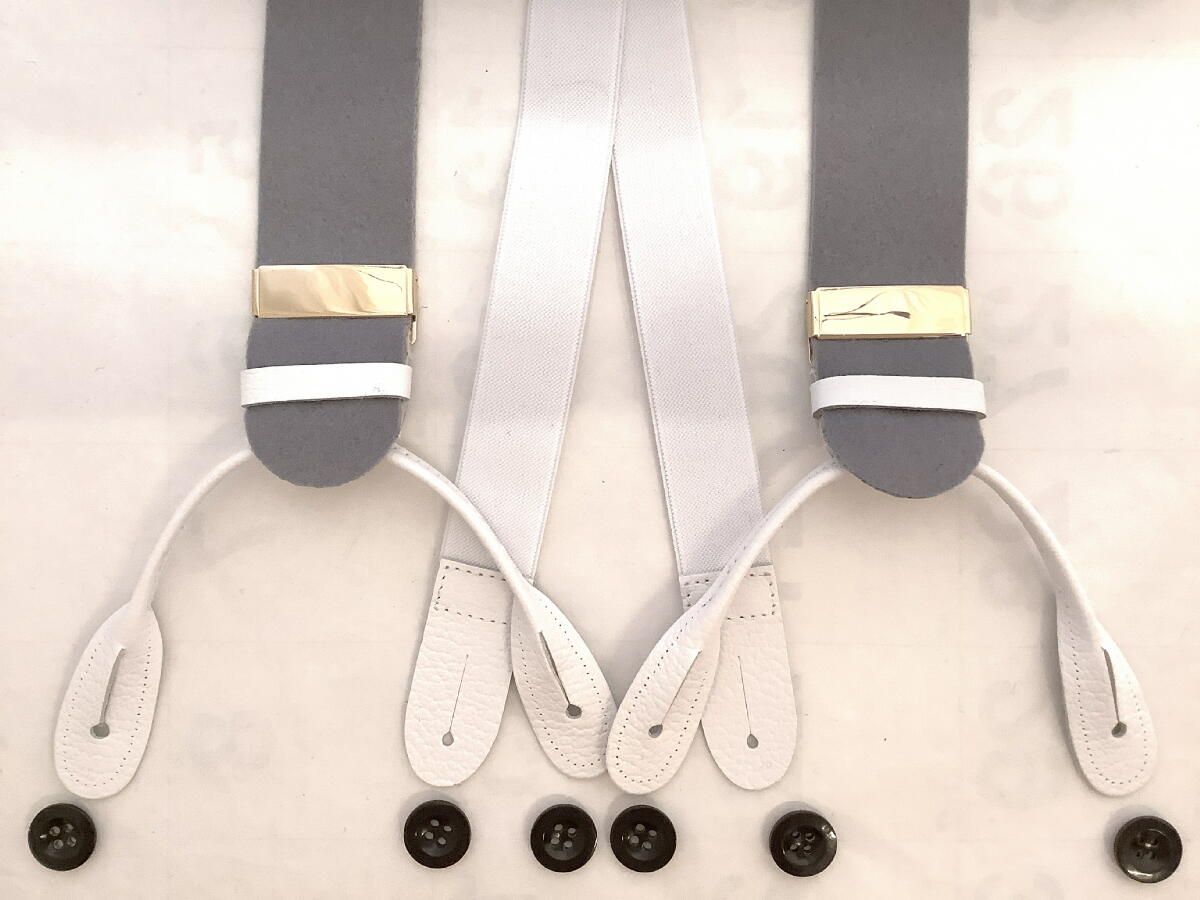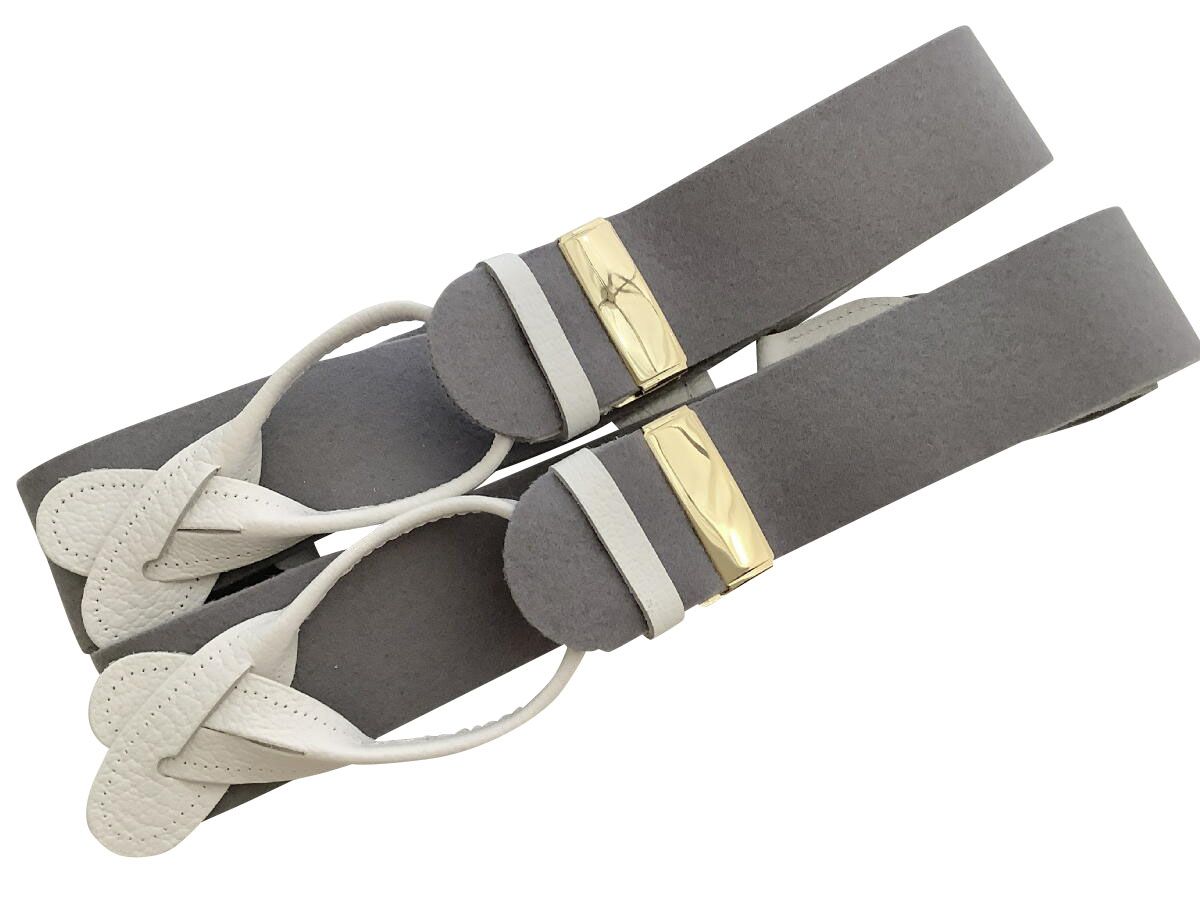 サスペンダー英国製アルバートサーストン6ボタン留ウールボックスグレイに白エンドBXGYWT B580