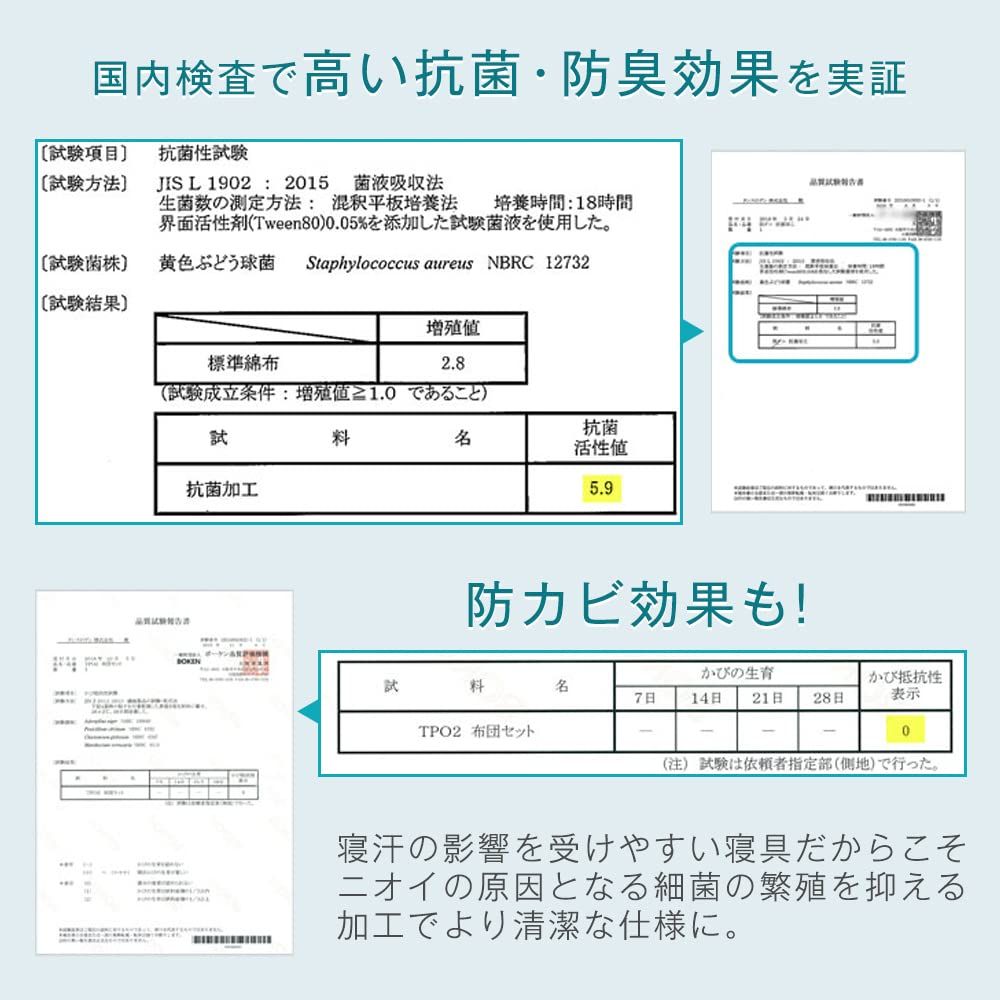 「商品状態」「商品情報 (新品の場合) 」【スタッフのおすすめポイント!】 ・届いてすぐ使える寝具7点セット ・敷布団がリニューアル!長さ200cmになったから ボリュームUP!ベッドにぴったりで使い勝手抜群! ・掛・敷・枕に抗菌防臭生地を採用 ・抗菌、防臭効果に加え防カビ効果も! ・高密度固綿入り!底つき感を軽減する三層敷布団 ・中綿たっぷり1.8kgのふっくらボリューム ・洗える掛布団&枕 ・ほこりの出にくい中空ポリエステル綿を使用 ・生地には全て肌触りなめらかピーチスキン加工 ・低ホルムアルデヒド ・ISO9001認可工場で生産された安心の品質 ・収納ケース付き 「主な仕様」【掛け布団】 サイズ:幅170×長さ210cm 側生地:ポリエステル100%(ピーチスキン加工) 詰め物:ポリエステル綿100% 詰め物重量:1.8kg カバー用ループ数:6カ所【敷き布団】サイズ:幅120×長さ200cm 側生地:ポリエステル100%(ピーチスキン加工) 巻き綿:ポリエステル100% 固綿:ポリエステル100% 詰め物重量:約3.6kg 【枕】サイズ:幅63×奥行43cm 側生地:ポリエステル100%(ピーチスキン加工) 詰め物:ポリエステル綿100% 詰め物重量:0.5kg 【カラー】カバー:サテン調チャコールグレー(ふとん本体はベージュです) 【生産国】中国(日本で企画し中国で製造) 【掛け布団・まくら・カバー洗濯OK】※サイズ表記は生地寸であり、仕上がり寸ではございません。予めご了承ください。 ※掛け布団のサイズはふくらみによって多少の誤差が生じる場合がございます。あらかじめご了承ください。 ※掛け布団のふくらみは開梱直後と開梱して広げた後、ご使用のうちに変化してまいります。 ◆商品が届きましたら、一度天日干しをお願い致します◆ こちらのお布団セットは、コンパクトな梱包でお届け致します。使用前に一度風通しの良いところで干して頂きますと、より早くふんわりとしたお布団に仕上がります。(カッターナイフでの開梱には十分ご注意ください。)※風通しの良い日に天日干しして下さい。 ※干す場合は、白いカバーで覆ってください。 ※干す時間帯は、午前10時~午後3時位の約2~3時間が最適です。できるだけ裏表を返してください。 ※収納時は湿気の少ないところに干してから防虫剤を入れてください。 ※汚れがひどい場合は、お近くのクリーニング店にご相談ください。 【スタッフのおすすめポイント!】 ・届いてすぐ使える寝具7点セット ・敷布団がリニューアル!長さ200cmになったから ボリュームUP!ベッドにぴったりで使い勝手抜群! ・掛・敷・枕に抗菌防臭生地を採用 ・抗菌、防臭効果に加え防カビ効果も! ・高密度固綿入り!底つき感を軽減する三層敷布団 ・中綿たっぷり1.8kgのふっくらボリューム ・洗える掛布団&枕 ・ほこりの出にくい中空ポリエステル綿を使用 ・生地には全て肌触りなめらかピーチスキン加工 ・低ホルムアルデヒド ・ISO9001認可工場で生産された安心の品質 ・収納ケース付き