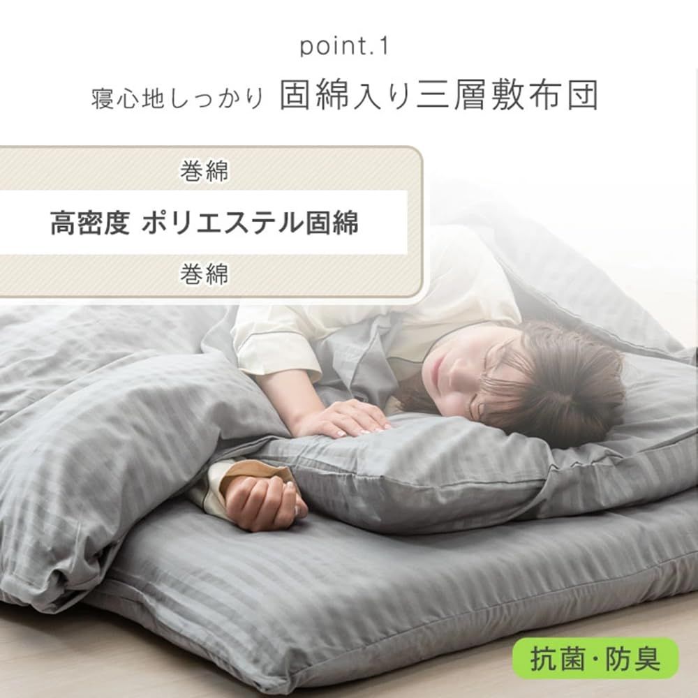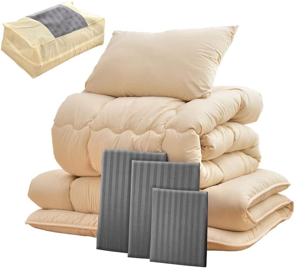 「特価★早い者勝ち★1点限り」タンスのゲン 布団セット シングル 7点セット【高密度固綿 三層敷布団】カバー付き 収納ケース付き 掛布団 敷布団 枕
