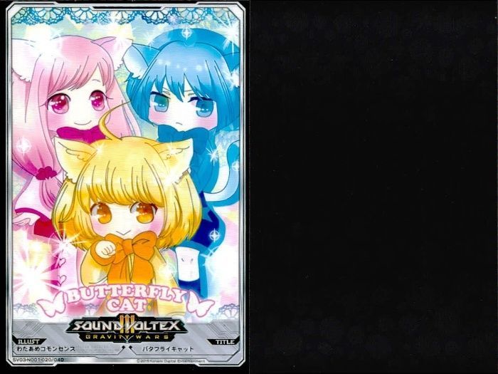 ux207 カード まとめ サウンドボルテックス SDVX Party Stream!! 重巡舞曲 絶対零度 玉虫色 ガヴリールドロップス BUTTERFLY CAT