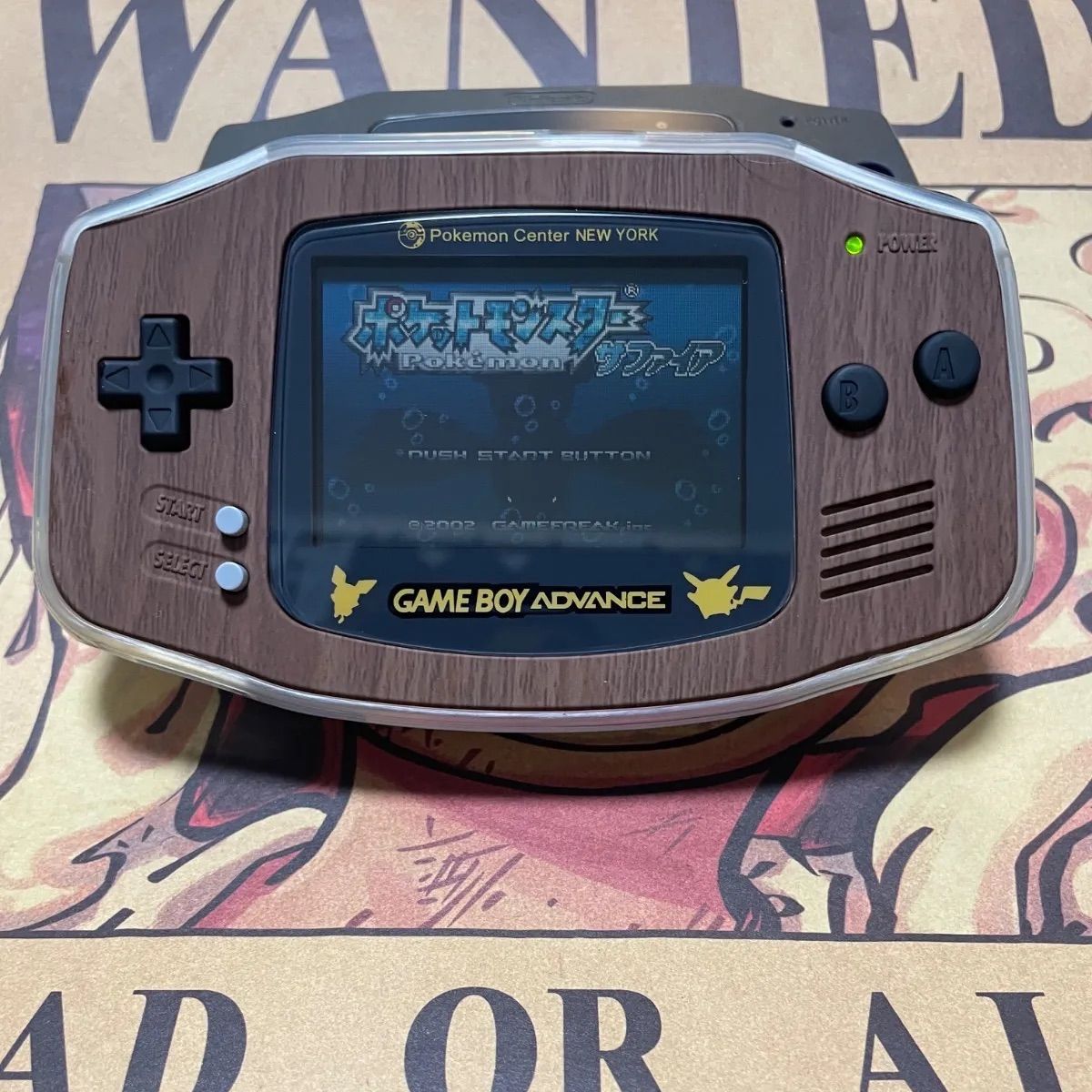 ゲームボーイ アドバンス 本体 木目調 ピカチュウカスタム ポケモン サファイア カセット カバー付き 美品 動作確認済み