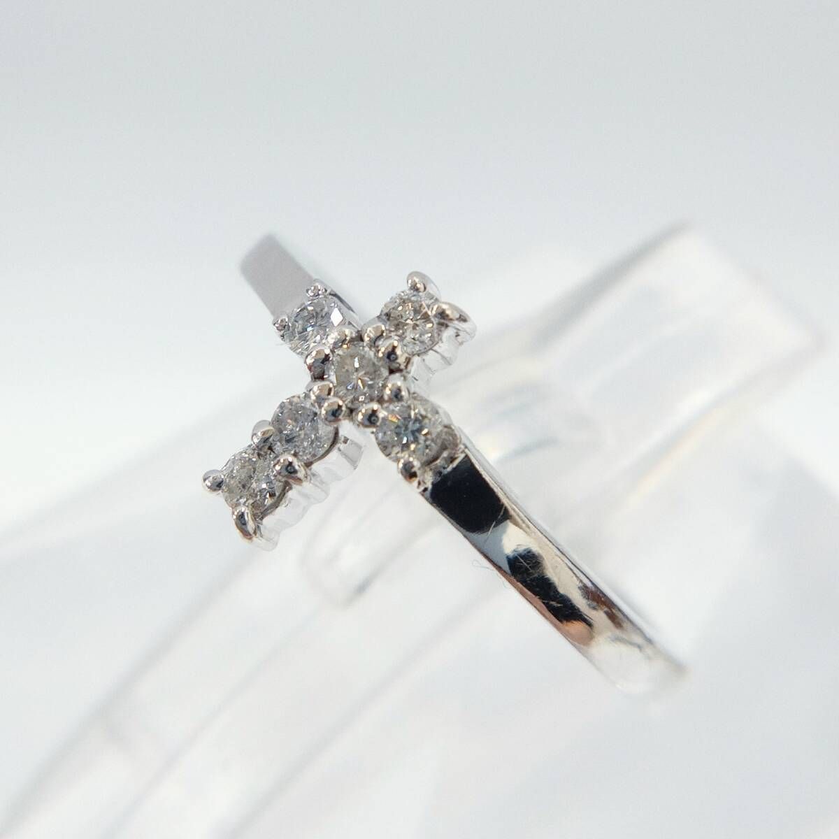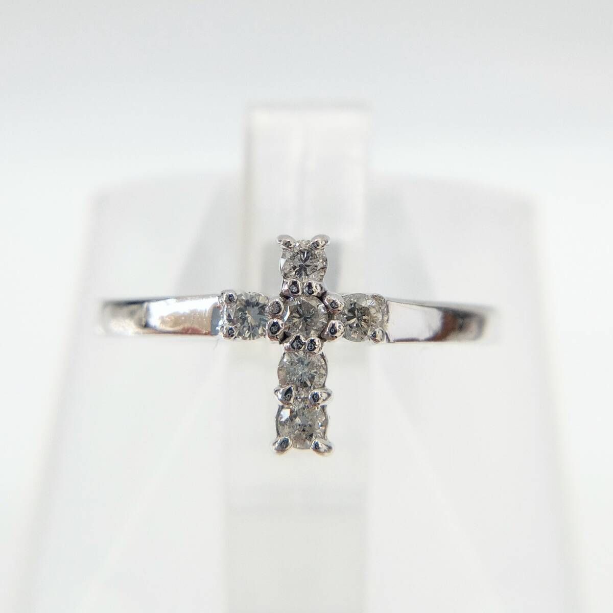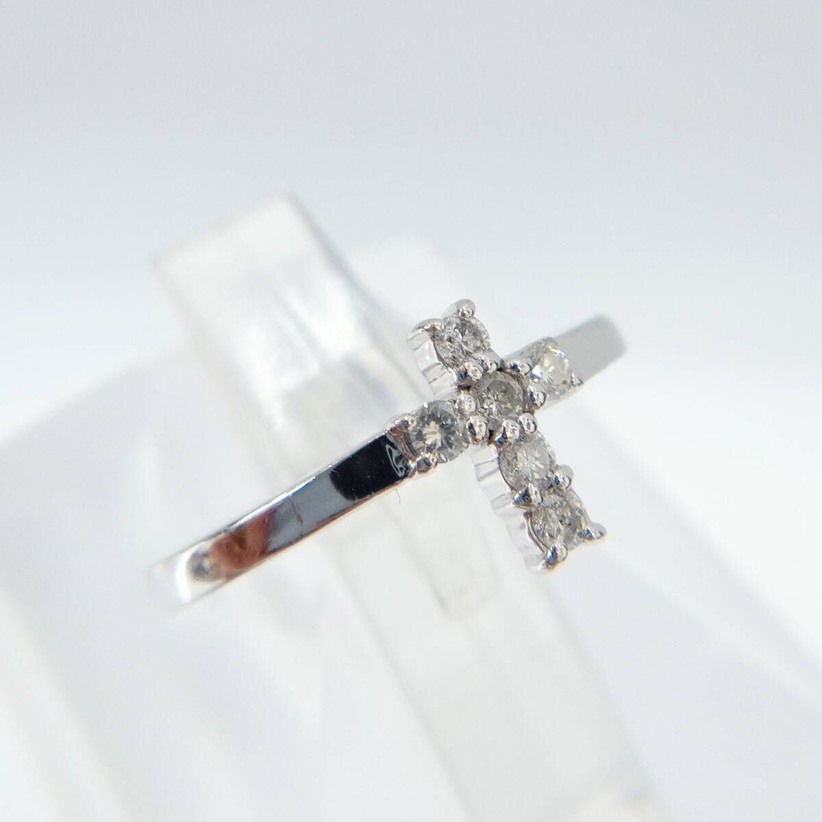 K18WG 18金 ホワイトゴールド 3号 1.5g 指輪 リング ダイヤモンド 0.11ct クロス 十字架 レディースアクセサリ ピンキー