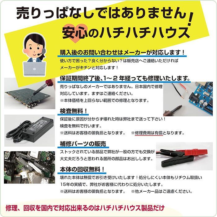 ※条件を満たした場合の保証範囲内修理、不良修理・交換は事前に当ショップ内ではなく、直接ハチハチハウス電話窓口までご相談下さい。