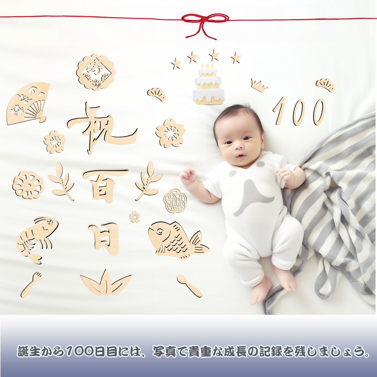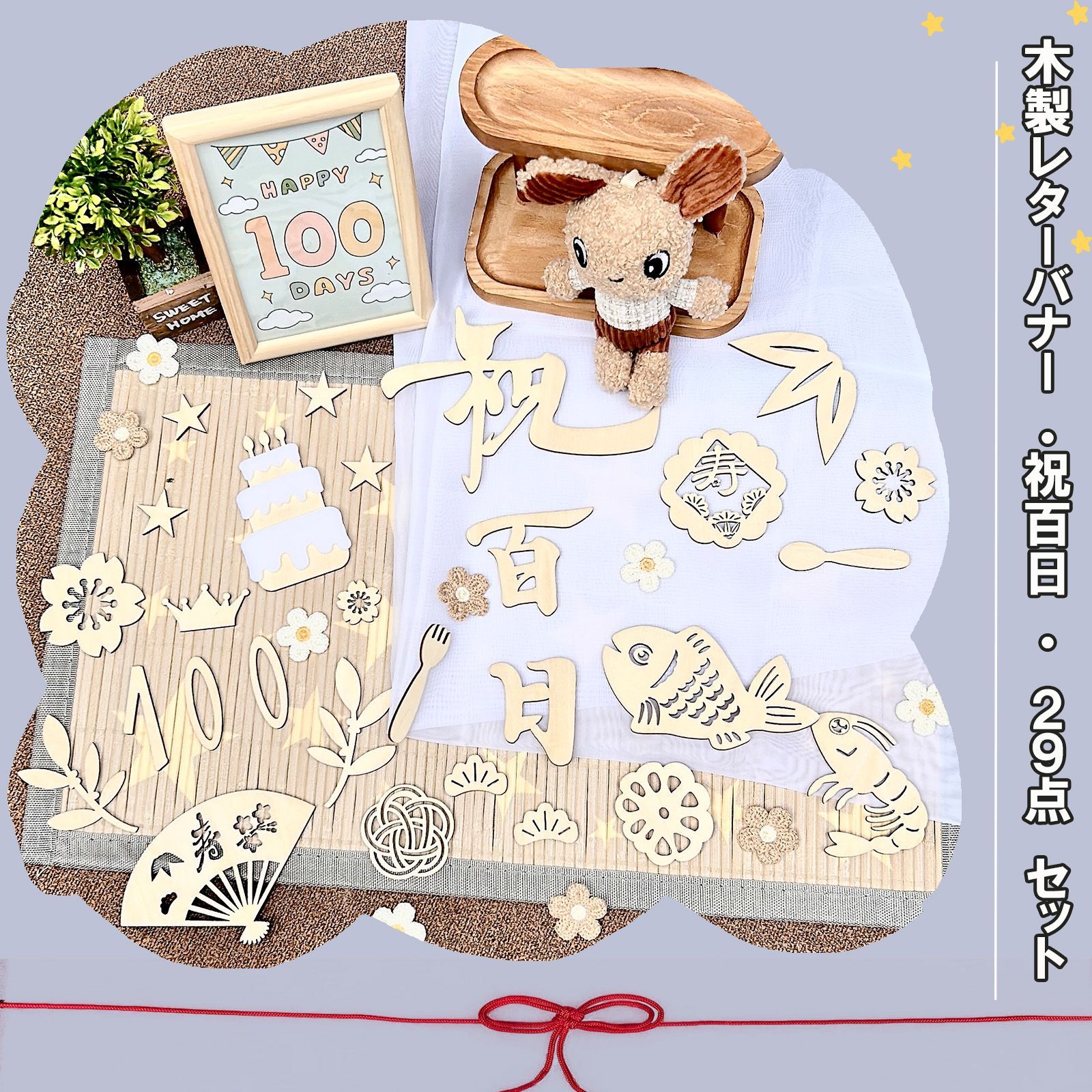 祝百日 29枚 レターバナー 木製 お食い初め ウッドバナー 100日 赤ちゃん 飾り ウッドレター ナチュラル お祝い (a2)