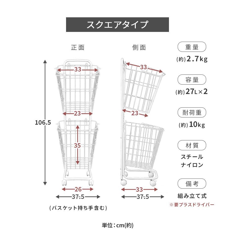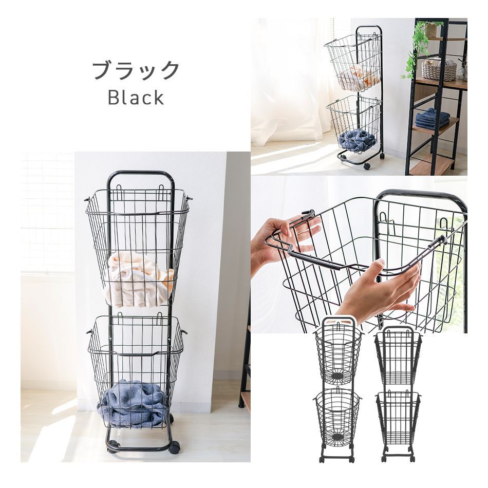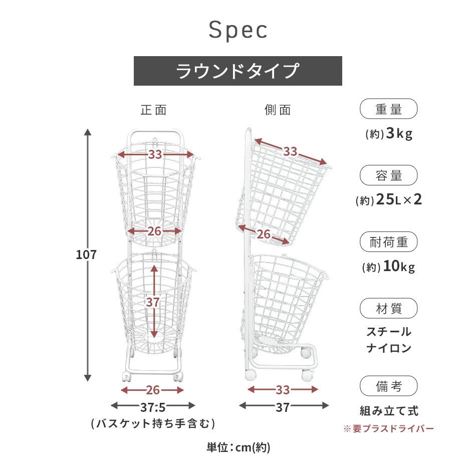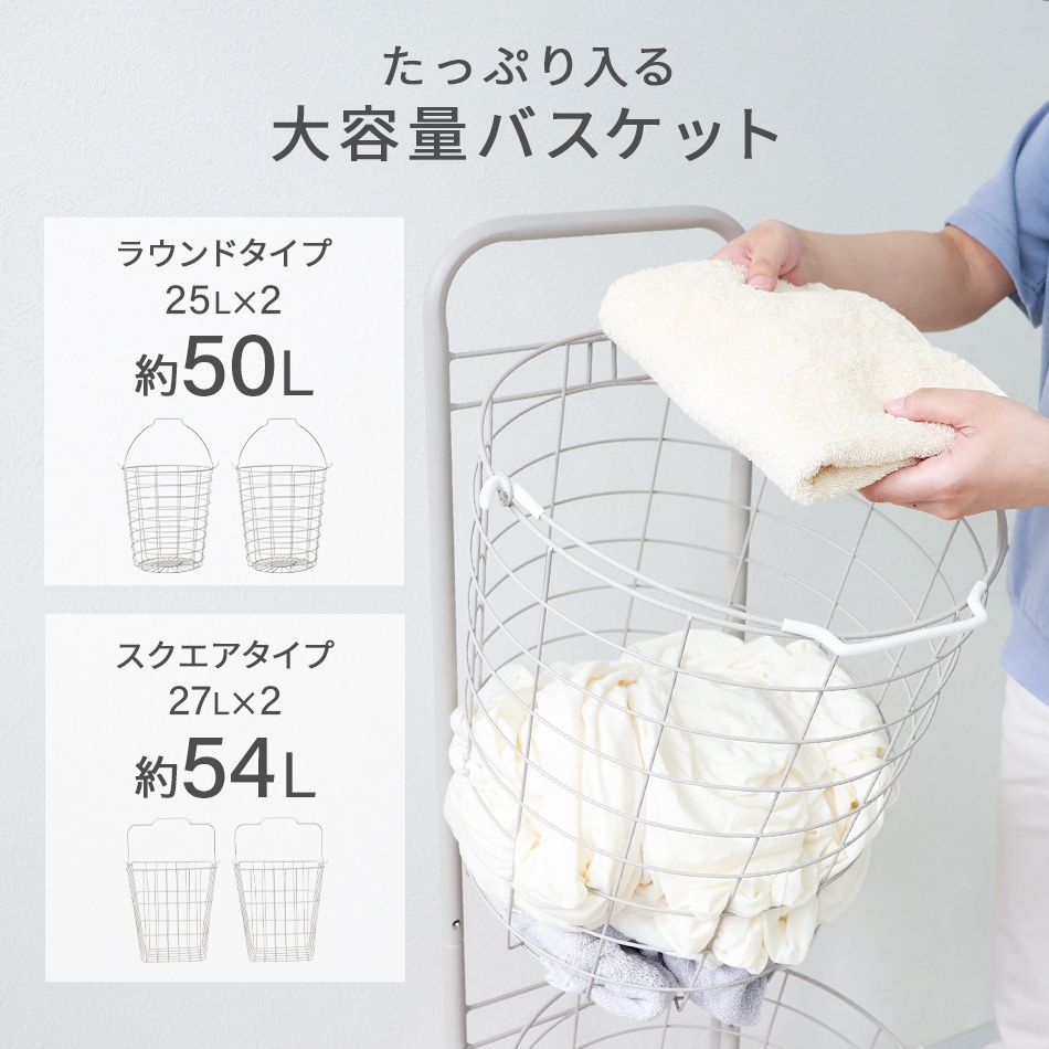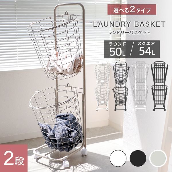 【送料無料】ランドリーバスケット ランドリーワゴン 2段 洗濯カゴ 丸型 角型 キャスター付き ランドリーラック かご カゴ 脱衣かご 洗濯かご ラック ランドリー収納 洗濯物入れ おしゃれ シンプル 北欧 一人暮らし 新生活 FAE001