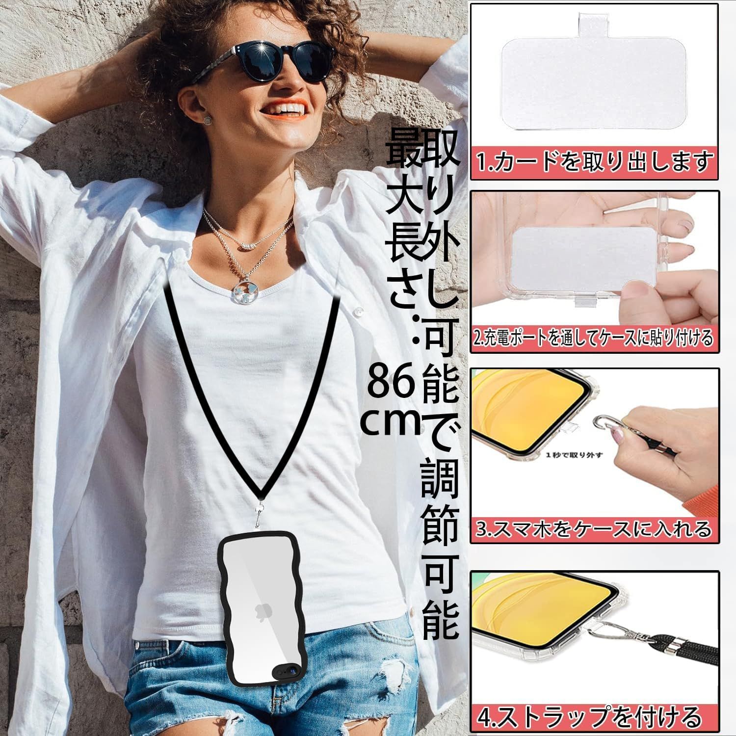 【人気商品】iPhone iPhone 7 ケース クリア ショルダー ケース 全面保護 人気 かわいい iPhone カバー 透明 スマホケース 8 薄型 軽量 首かけ 肩掛け 第3/2世代 縄掛けケース ストラップ付き 長さ調整可能 se 落下防止 Qi