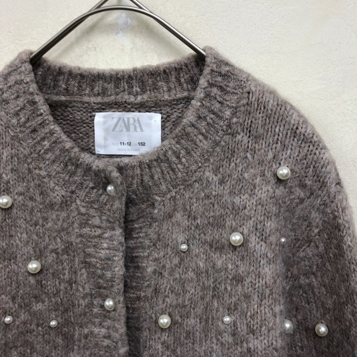 1N1745-J◆キッズ◆ZARA ザラ パール付きニットカーディガン◆ブラウン サイズ11-12 152cm 女の子 女児 子ども ジュニア トップス 秋冬