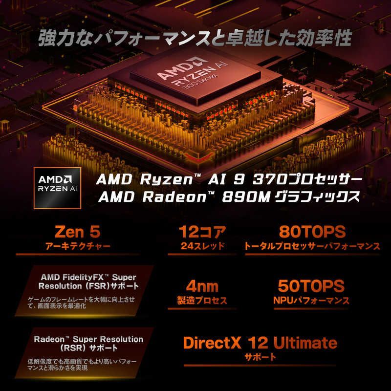 「AMD Ryzen AI 9 HX370モデル、メモリ32GB 、ストレージ2TB」