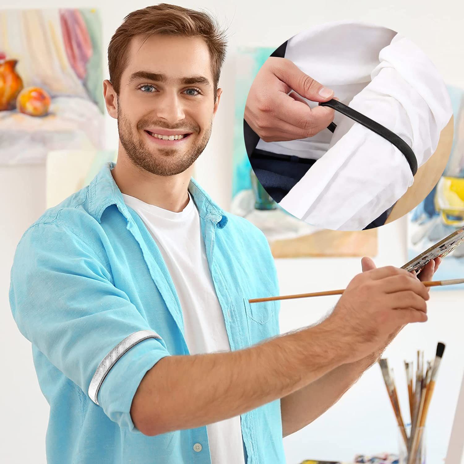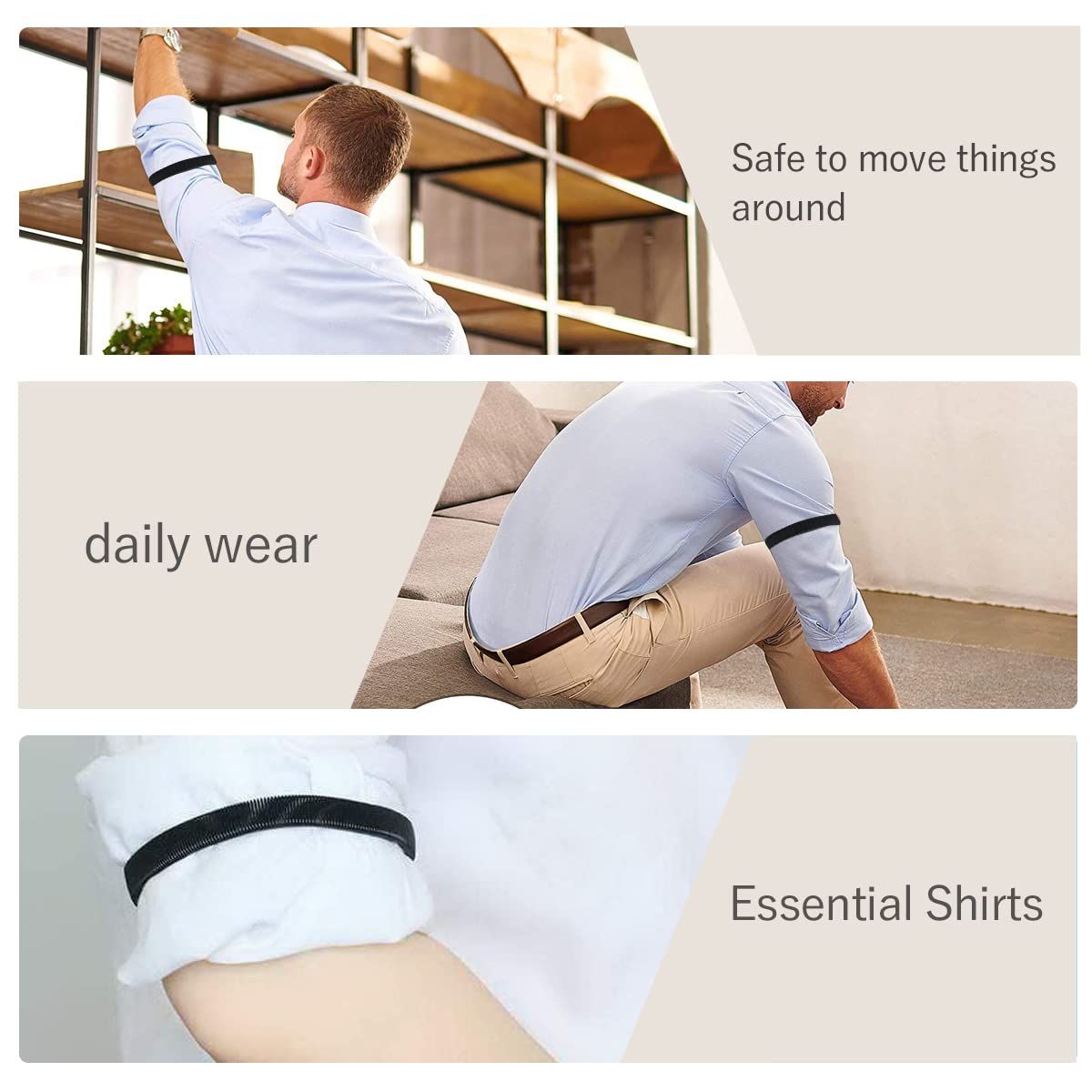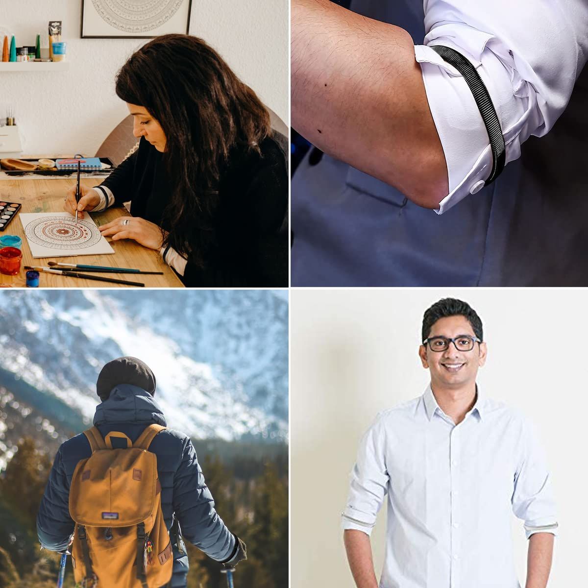 【迅速発送】WinsGreat 4個セット アームバンド メンズ レディース スプリングループ式 腕バンド 袖丈 着脱簡単 伸縮性 男女兼用 結婚式 卒業式 入学式 (ブラック+シルバー)