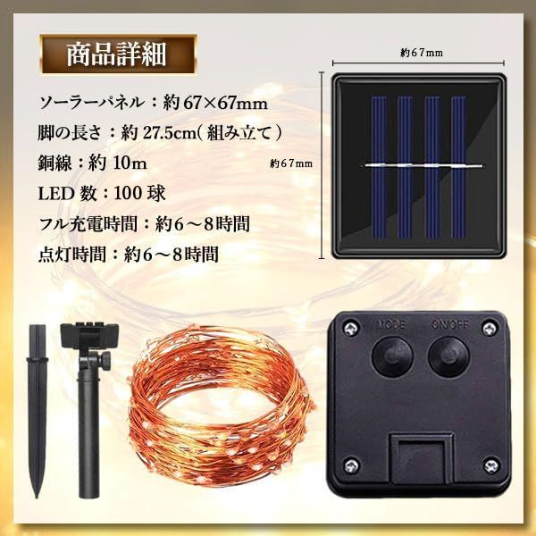 イルミネーション ソーラー 屋外 室内 防水 クリスマス イルミネーションライト ソーラーライト ガーデンライト LED 屋外用 ベランダ フェアリーライト 電飾 明るい 飾り おしゃれ (イエロー 100球)