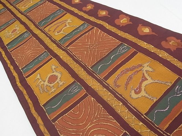 平和屋着物■六通柄袋帯 狩猟文 間道 逸品 wb5363