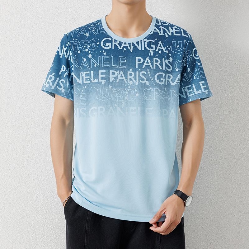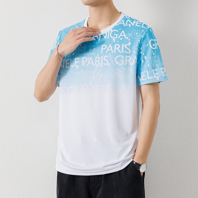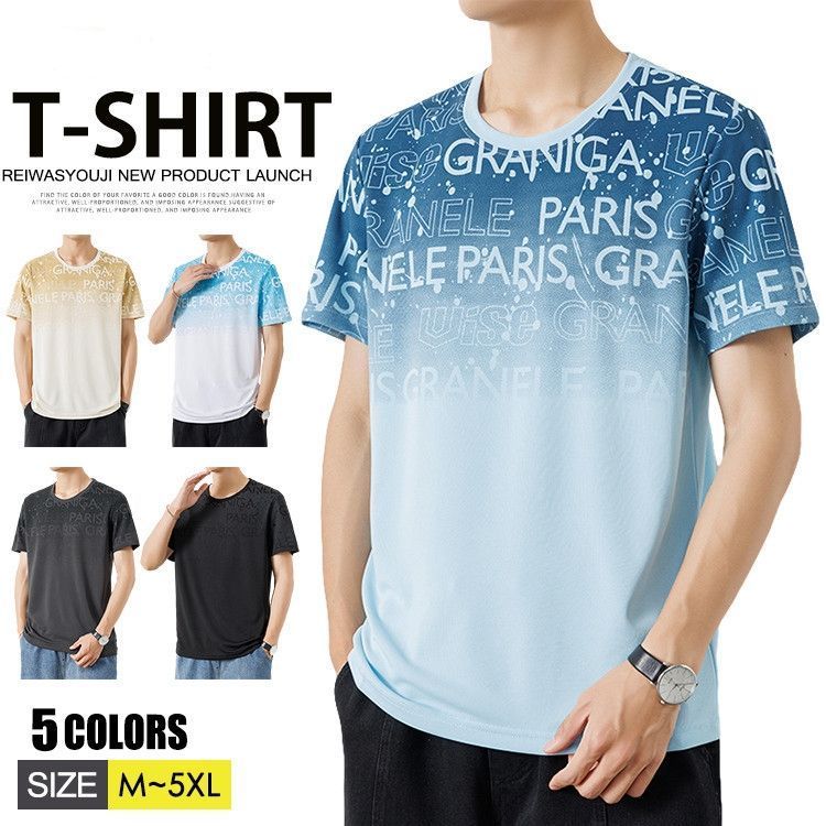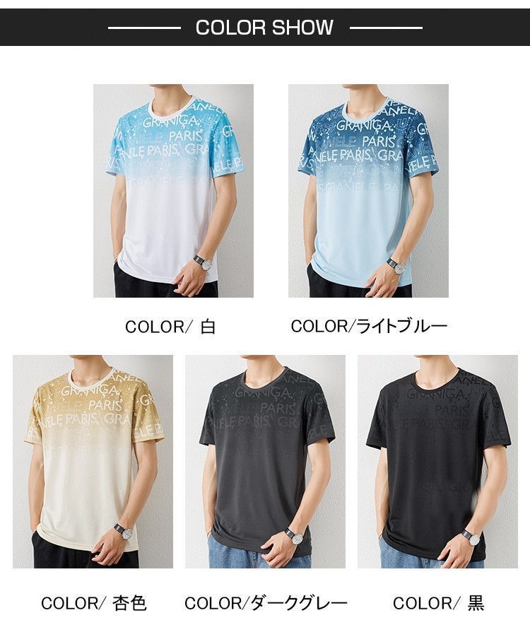 グラデーション Tシャツ メンズ 接触冷感 ストレッチ 半袖 tシャツ 薄手 ティーシャツ 丸首Tシャツ カットソー 半袖Tシャツ 英字 涼しいTシャツ 清涼 トップス 夏 夏服 キレイめ 大きいサイズ utrl638